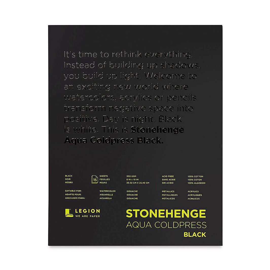 ¿Necesitas el mejor papel para acuarela color negro? Los blocks Legion Stonehenge Aqua Black son el primer papel de acuarela negro 100% algodón: estos maravillosos blocks han sido creados especialmente para acuarelas metálicas, aunque también funcionan genial con goauches, acrílicos, tintas, lápices, cretas y pasteles. ¡Tienes que probarlo!