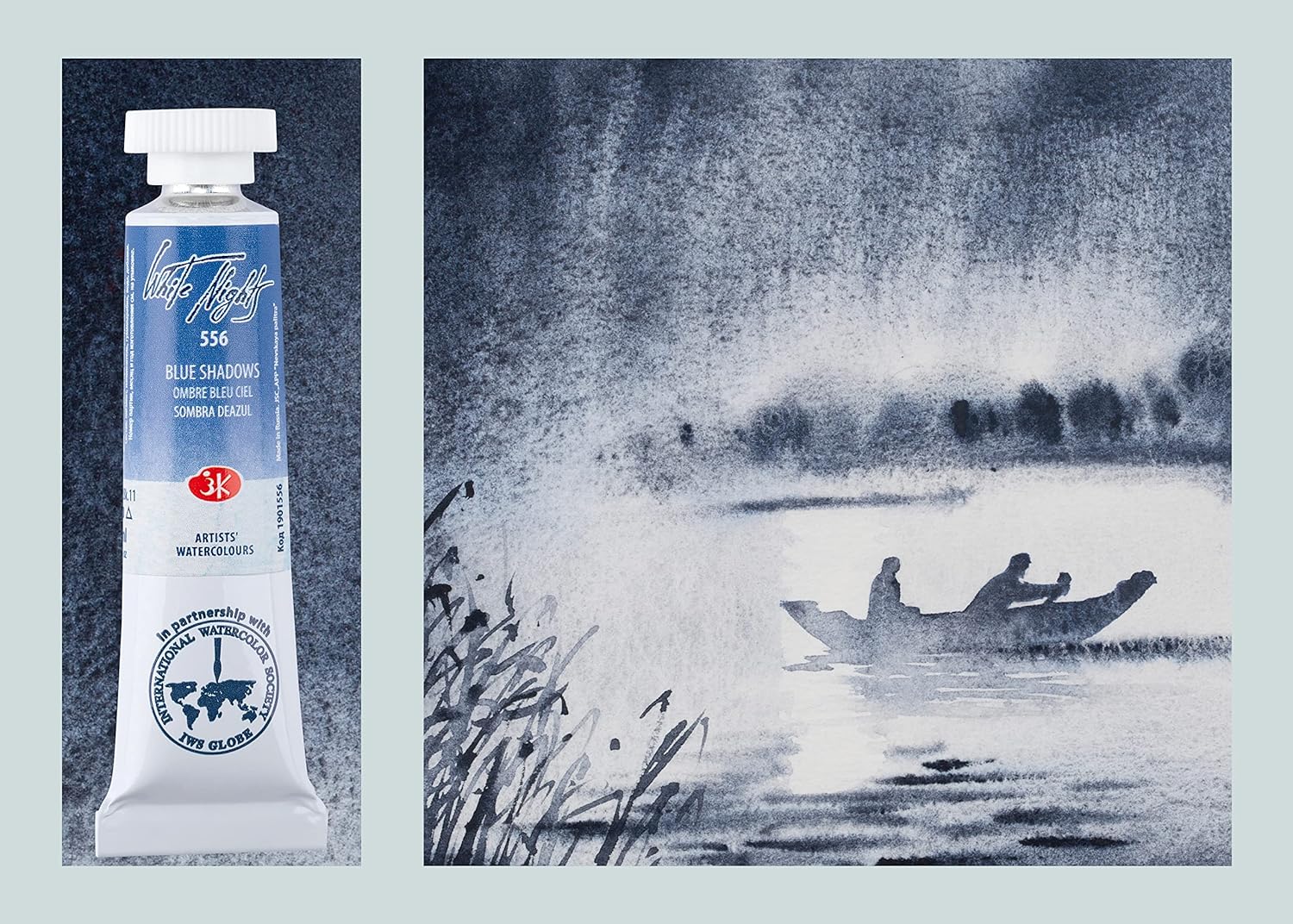 Este mini set de acuarelas White Nights Midnight trae los colores Sky-blue Shadows, Blue Shadows y Cobalt Mist, todos en presentación de tubo de 10 ml.