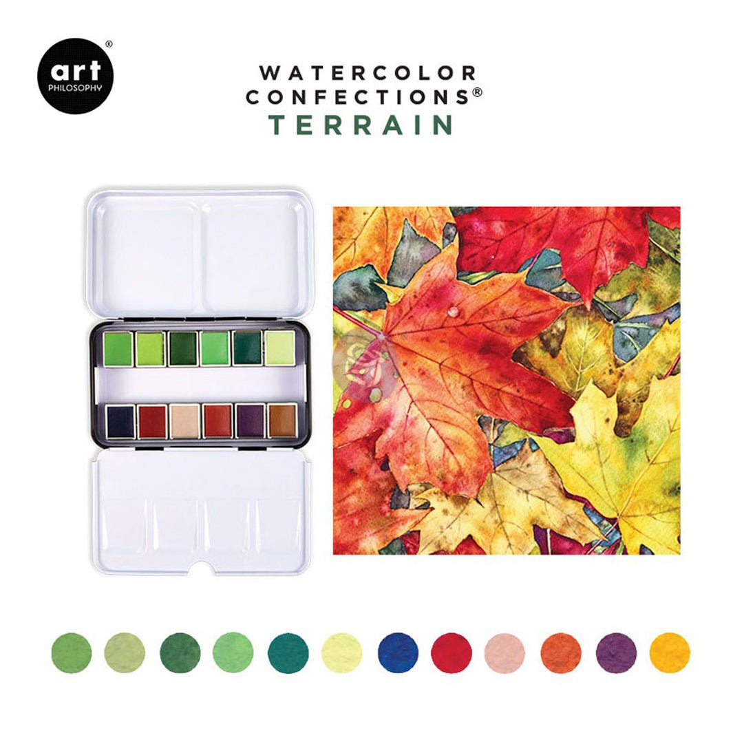Las Art Philosophy Confections son acuarelas semiprofesionales de excelente calidad, súper pigmentadas y portátiles. Todos los colores son brillantes e intensos, perfectos para artistas, ilustradores y diseñadores.
