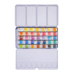 Los estuches White Nights traen pastillas de acuarela completas, en vez de las típicas medias pastillas. Este set incluye una carcasa metálica y 35 pastillas de acuarela en los siguientes colores: blanco, cadmio limón, aureolina, amarillo cadmio medio, amarillo de Nápoles claro, ocre claro, dorado oscuro (no metálico), naranja, rojo tiziano, rojo cadmio claro, rojo geranio, rubí, carmín, laca granza roja, púrpura de Venecia, magenta, lila quinacridona, violeta quinacridona, violeta ultramarino, azul cerúleo, azur cobalto, azul brillante, azul cobalto, ultramarino, azul de indantreno, índigo, turquesa cobalto, verde esmeralda, verde de mayo, verde vejiga, siena natural, siena tostada, sombra tostada, negro de humo y gris de Payne.