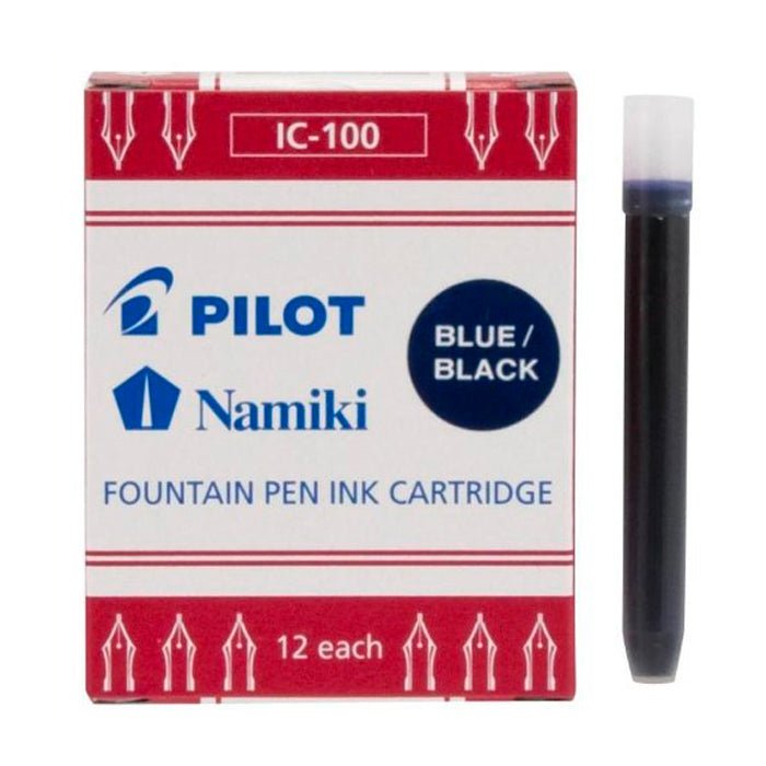 Cada cajita incluye 12 cartuchos de tinta para pluma fuente Pilot Namiki, todos del mismo color. Estos cartuchos están disponibles en 3 colores diferentes: negro, negro azulado y azul.