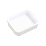 Cada quarter pan, sartén, o godet está hecha de plástico rígido color blanco, con esquinas redondeadas, y mide 1.8 x 1.4 x 0.5 cm por fuera, y 1.6 x 1.3 cm por dentro.