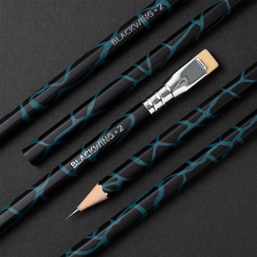 El lápiz Blackwing Volumen 2 Light & Dark es un tributo a los cambios que el arte genera en el mundo y la sociedad. Cada lápiz tiene un diseño craquelado que brilla en la oscuridad: la dualidad del arte y los desafíos que lo inspiran.