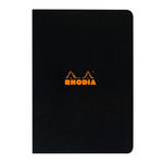 Las libretas Rhodia Side-Stapled están engrapadas de lado y su pasta suave color negro es a prueba de agua. Traen 48 hojas de papel Clairefontaine vellum de 80g, a puntos. Están disponibles en tamaños A5 (media carta) y A4 (carta).