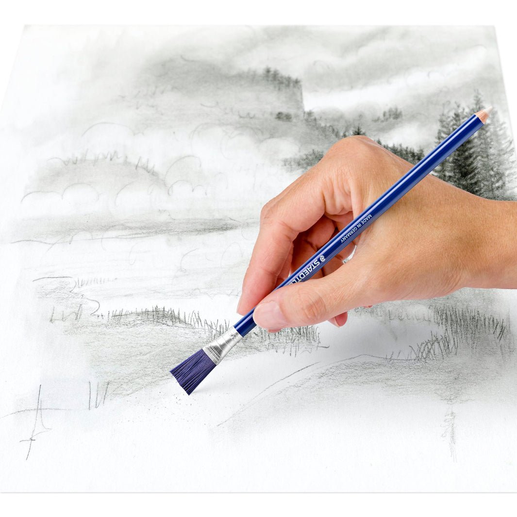 La goma blanca es suave, sin plástico, y te permitirá borrar y corregir sin dañar tu papel. Además, trae una escobilla de plástico integrada para limpiar los residuos del borrado.