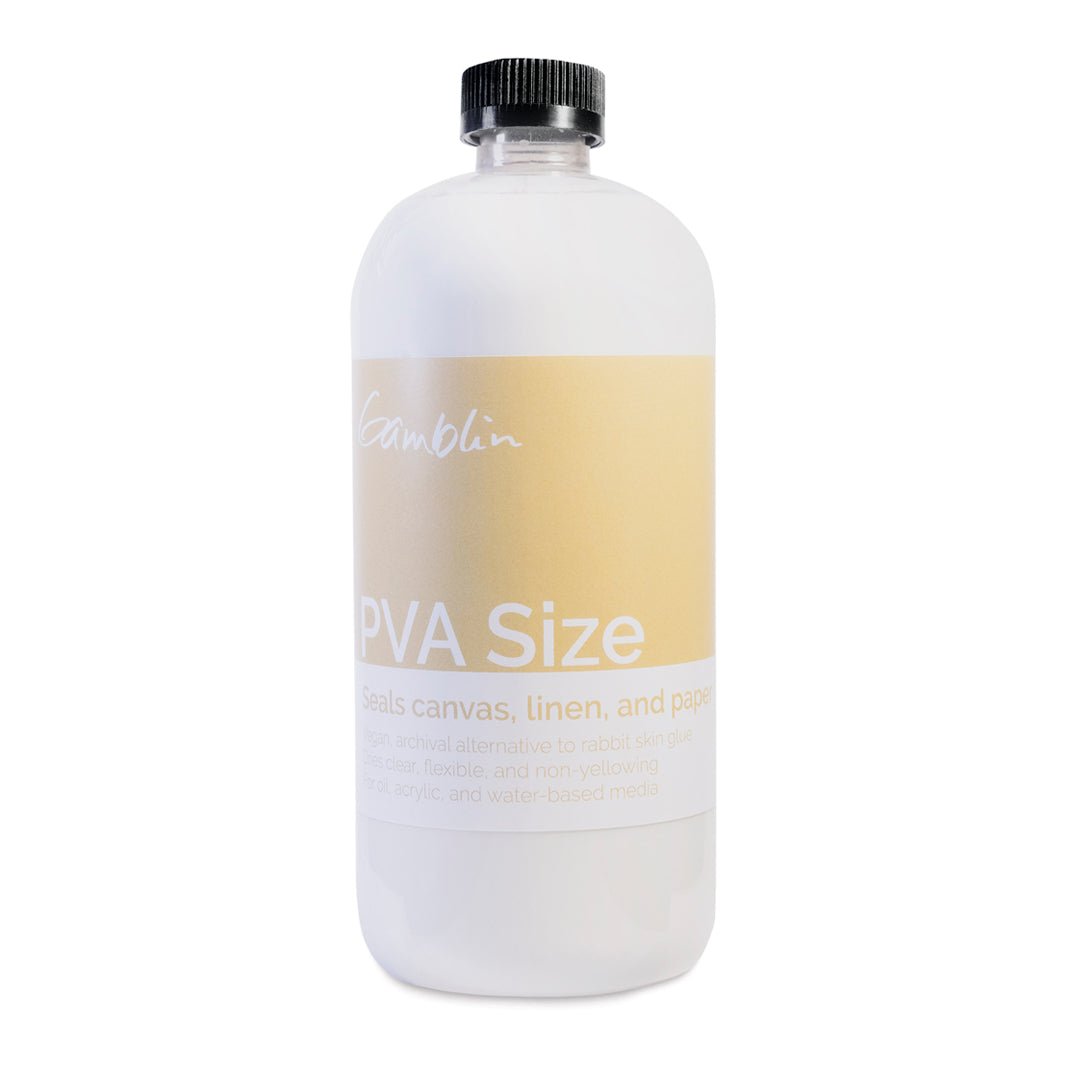 El medio Gamblin PVA Size es un sellador diseñado especialmente para preparar tela cruda y papeles de acuarela, mix media, o dibujo para poder pintar al óleo sobre ellos.