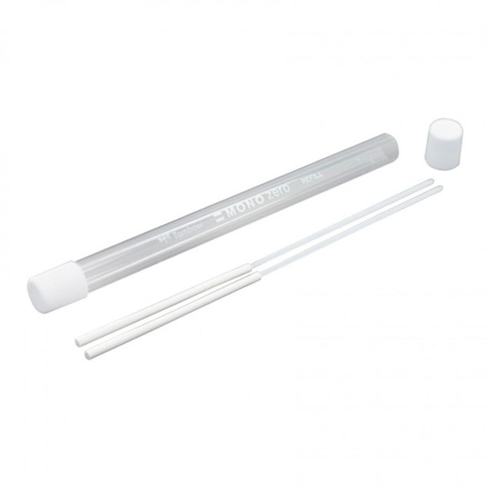 Este paquetito incluye 2 gomas de repuesto para el borrador Tombow Mono Zero Redondo.