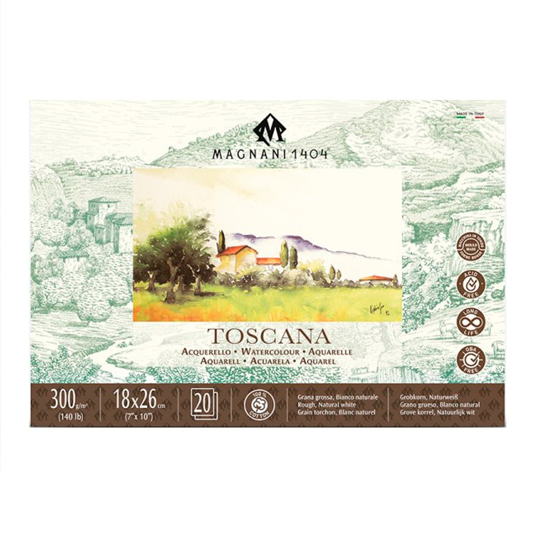 Estos blocks Magnani Toscana traen 20 hojas de 300g, son 100% algodón y están disponibles en 2 tamaños: 12 x 23cm y 18 x 26cm.