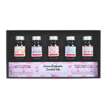 Este estuche de tintas perfumadas Herbin trae 5 tintas, cada una de 10 ml: Amber Orange, Purple Violet, Red Rose, Blue Lavender y Brown Cocoa.