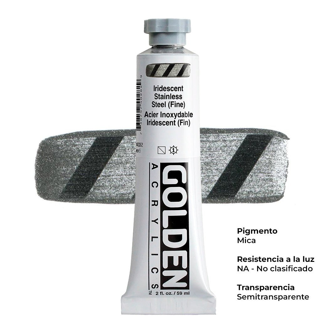 Los acrílicos Golden Heavy Body en tonos metálicos e interferencia tienen la excelente calidad típica de Golden: una consistencia espesa y cremosa, se deslizan como mantequilla mientras pintas y con una pigmentación no tiene igual.