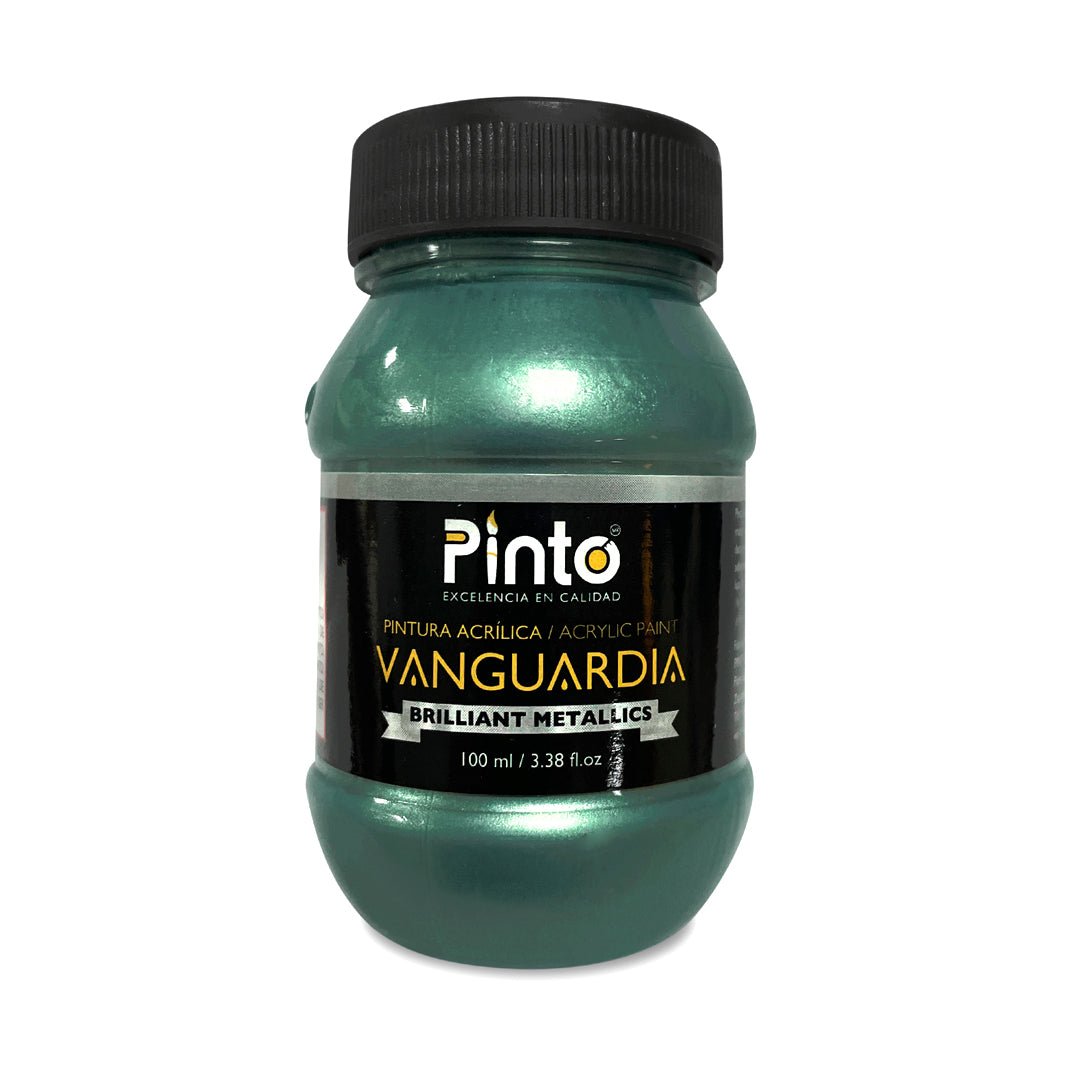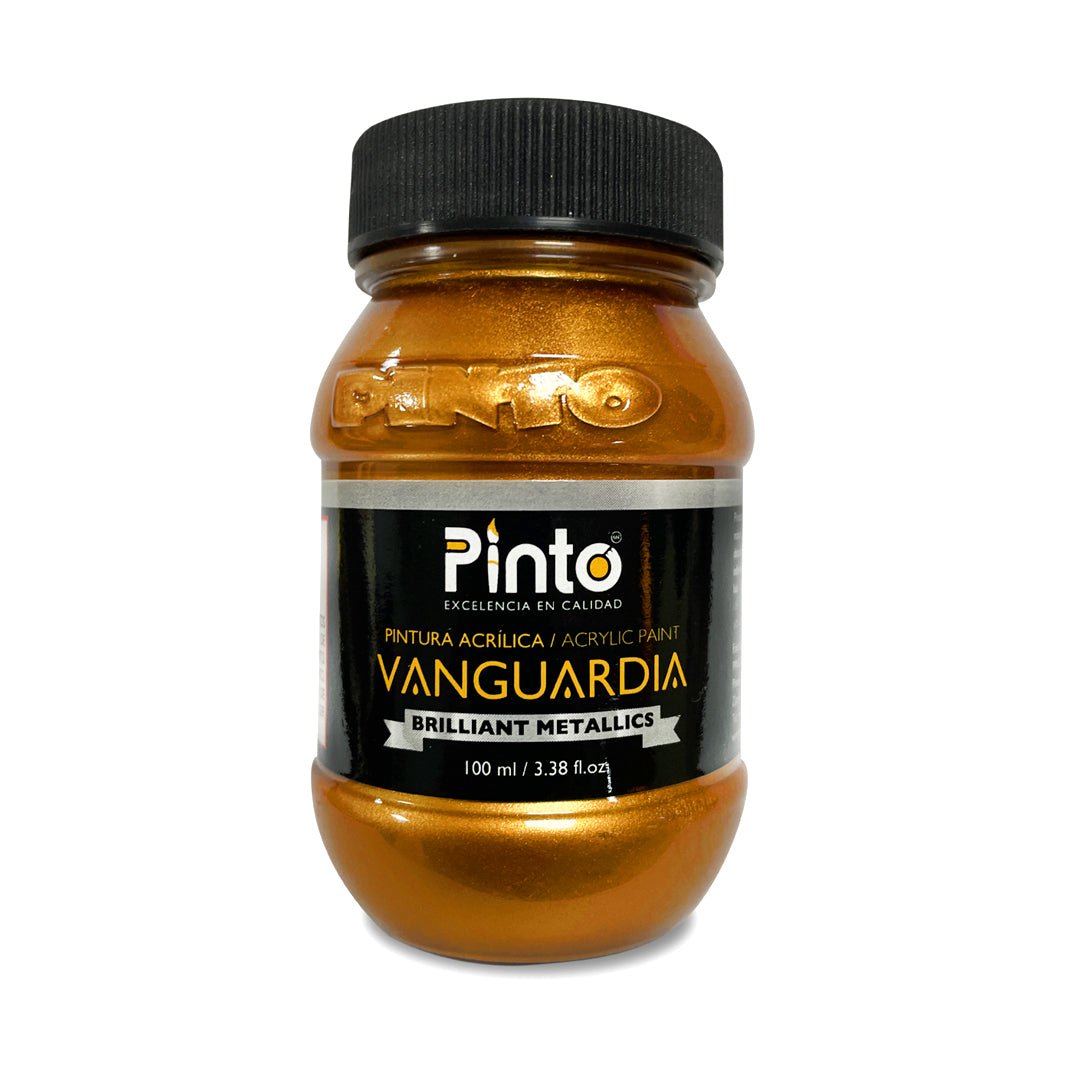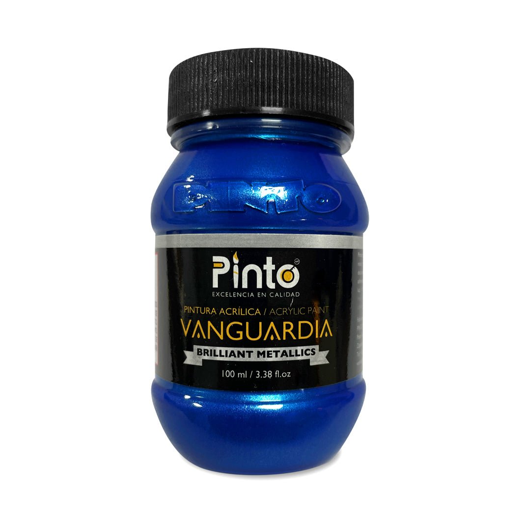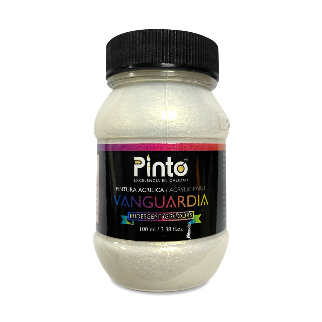 Los acrílicos metálicos Pinto Vanguardia está hechos a partir de pigmentos finamente molidos, resina acrílica, agua destilada y otros aditivos que dan como resultado una pintura acrílica mate con una viscosidad media y uniforme. Gracias a su concentración de pigmentos, los acrílicos Pinto son sumamente cubrientes; los colores son vibrantes y poseen un alto grado de resistencia a la luz.