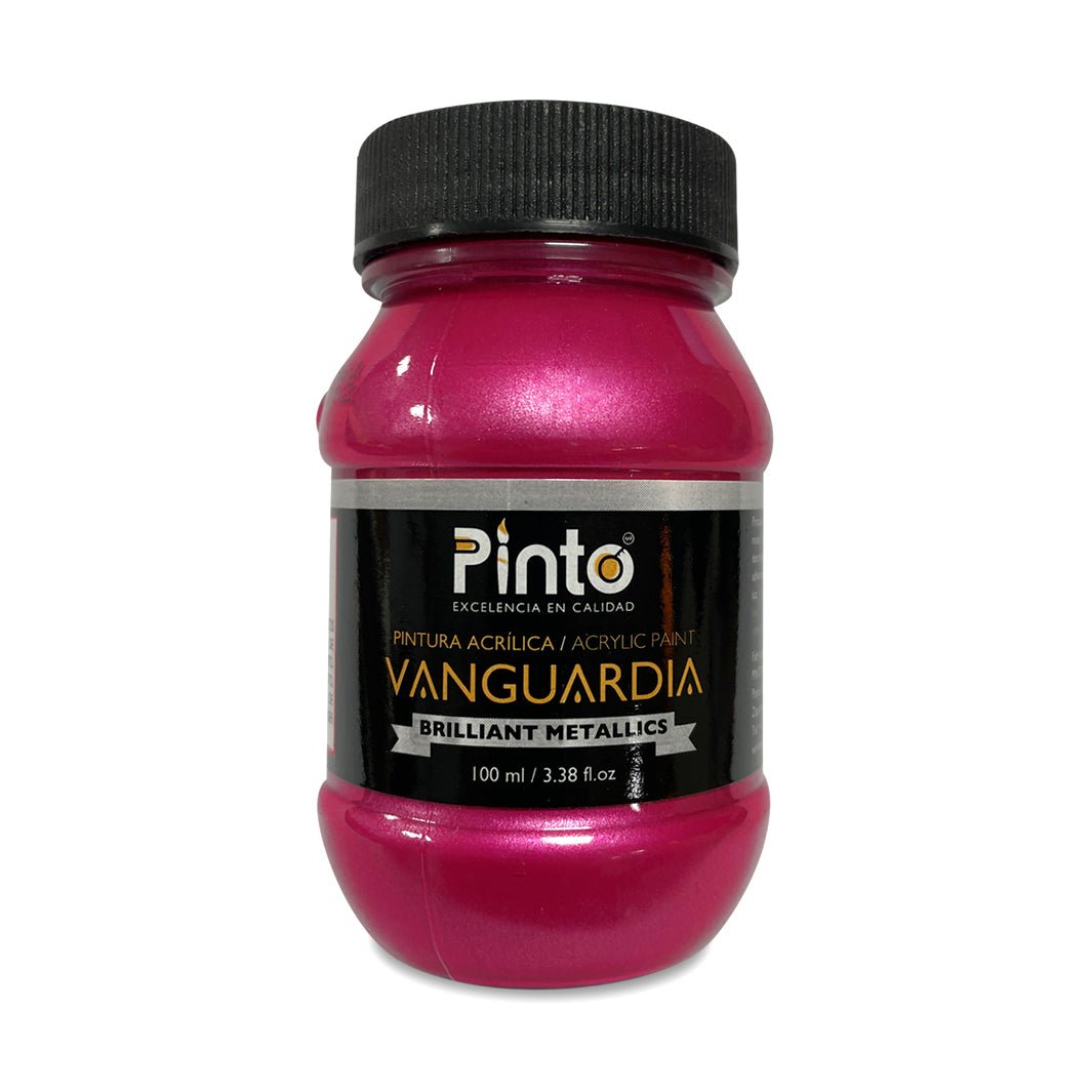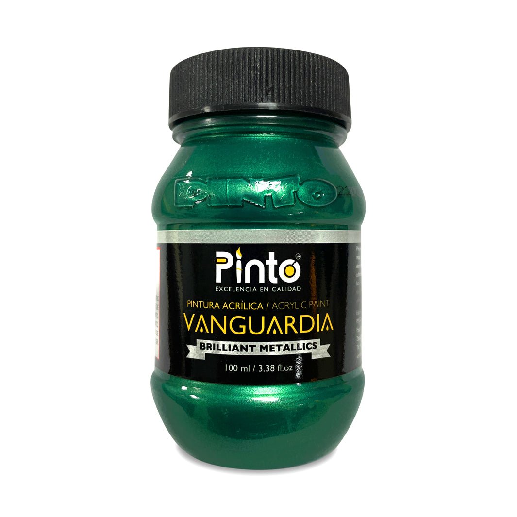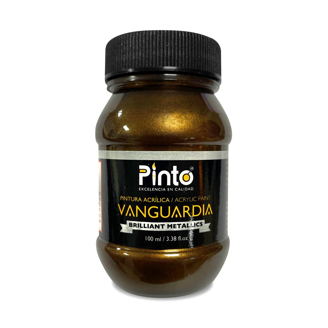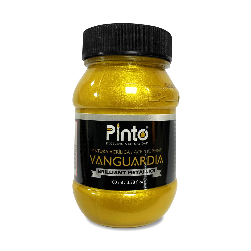 Los acrílicos metálicos Pinto Vanguardia está hechos a partir de pigmentos finamente molidos, resina acrílica, agua destilada y otros aditivos que dan como resultado una pintura acrílica mate con una viscosidad media y uniforme. Gracias a su concentración de pigmentos, los acrílicos Pinto son sumamente cubrientes; los colores son vibrantes y poseen un alto grado de resistencia a la luz.