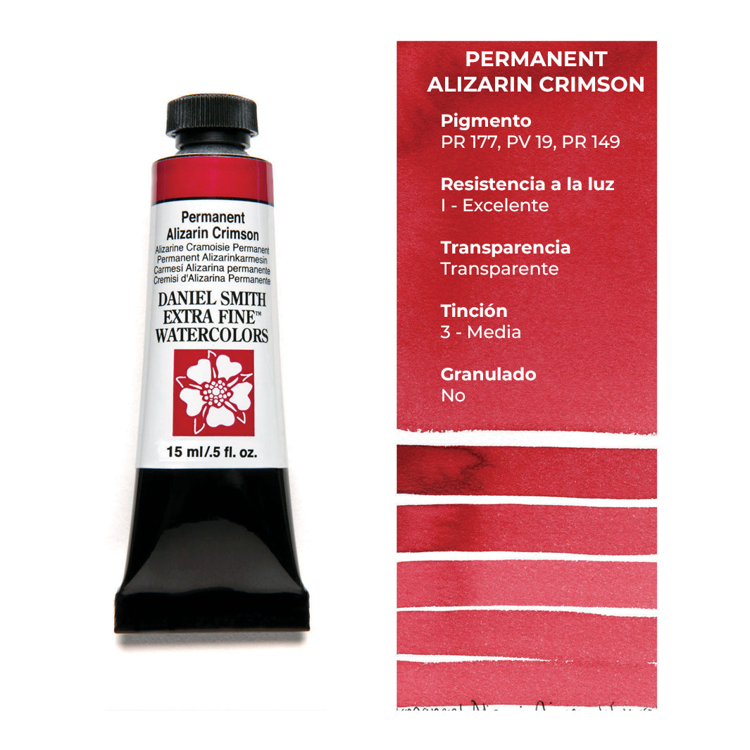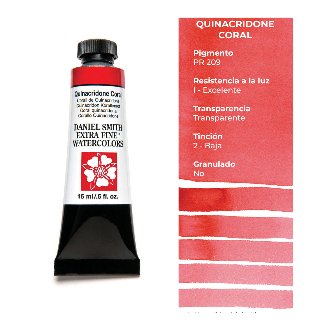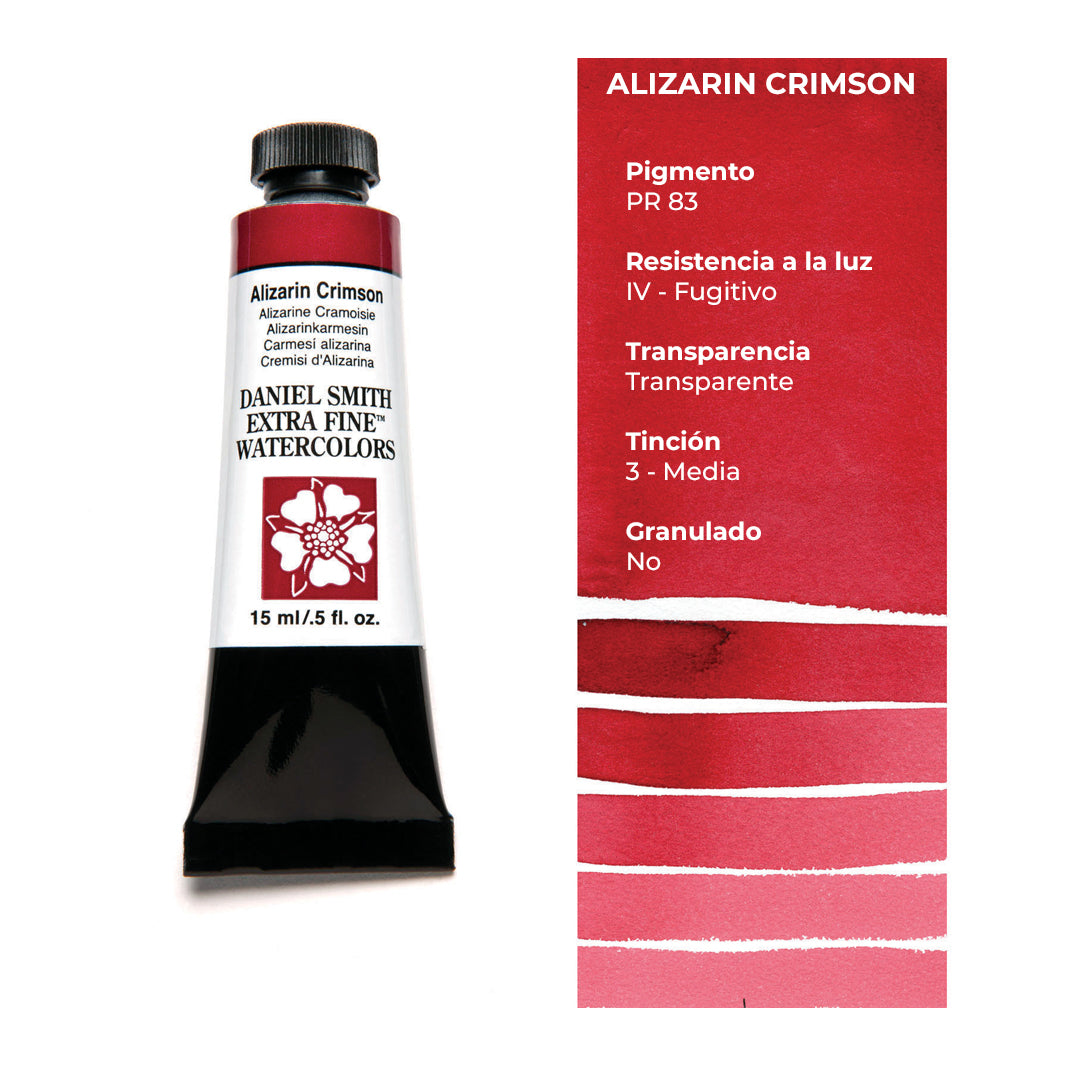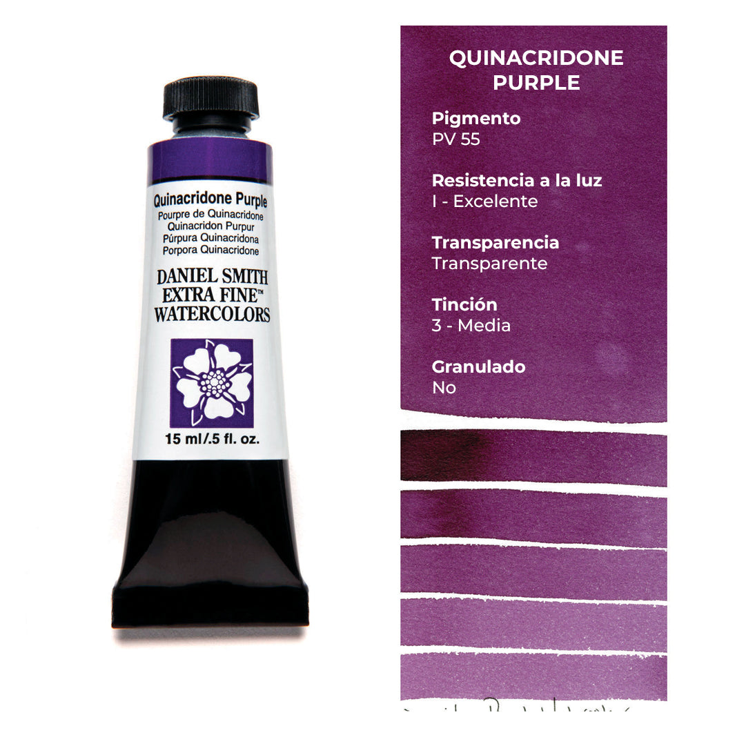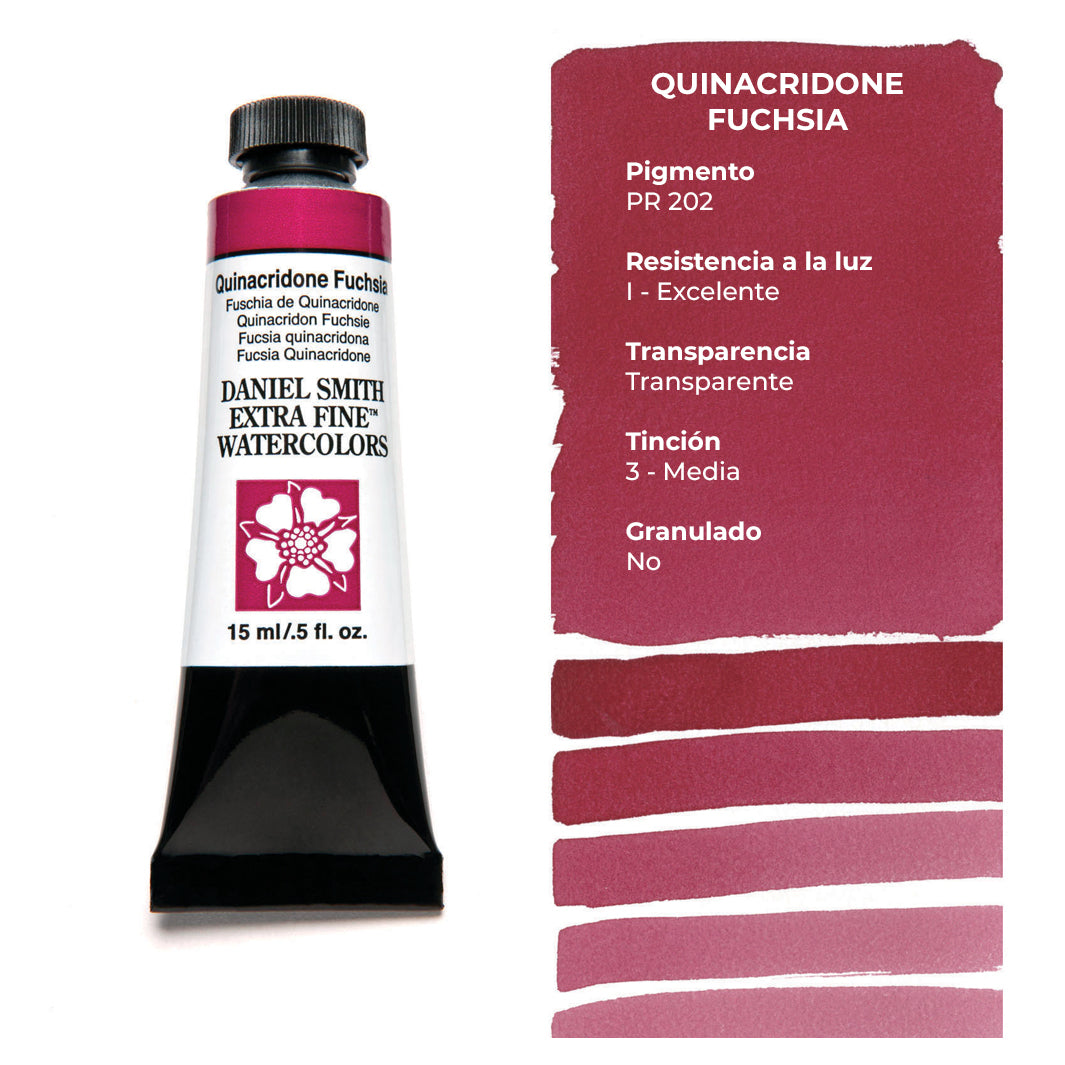 Cada tubo individual de acuarela Daniel Smith trae 15 ml de pintura; las tenemos disponibles en 100 colores, incluyendo los magníficos quinacridonas que solo Daniel Smith ofrece.