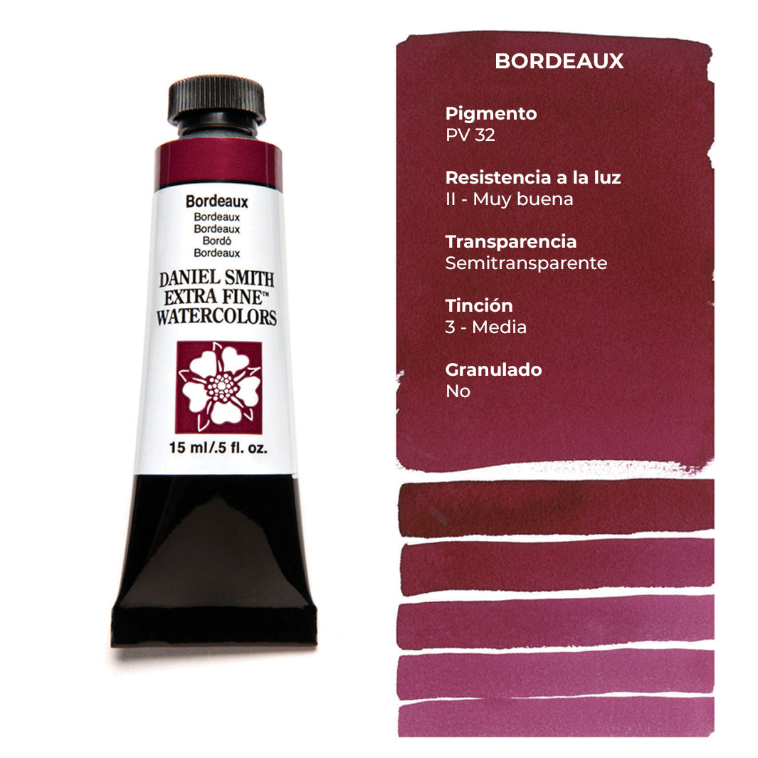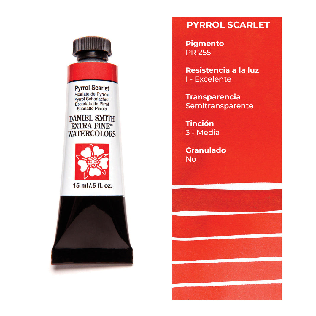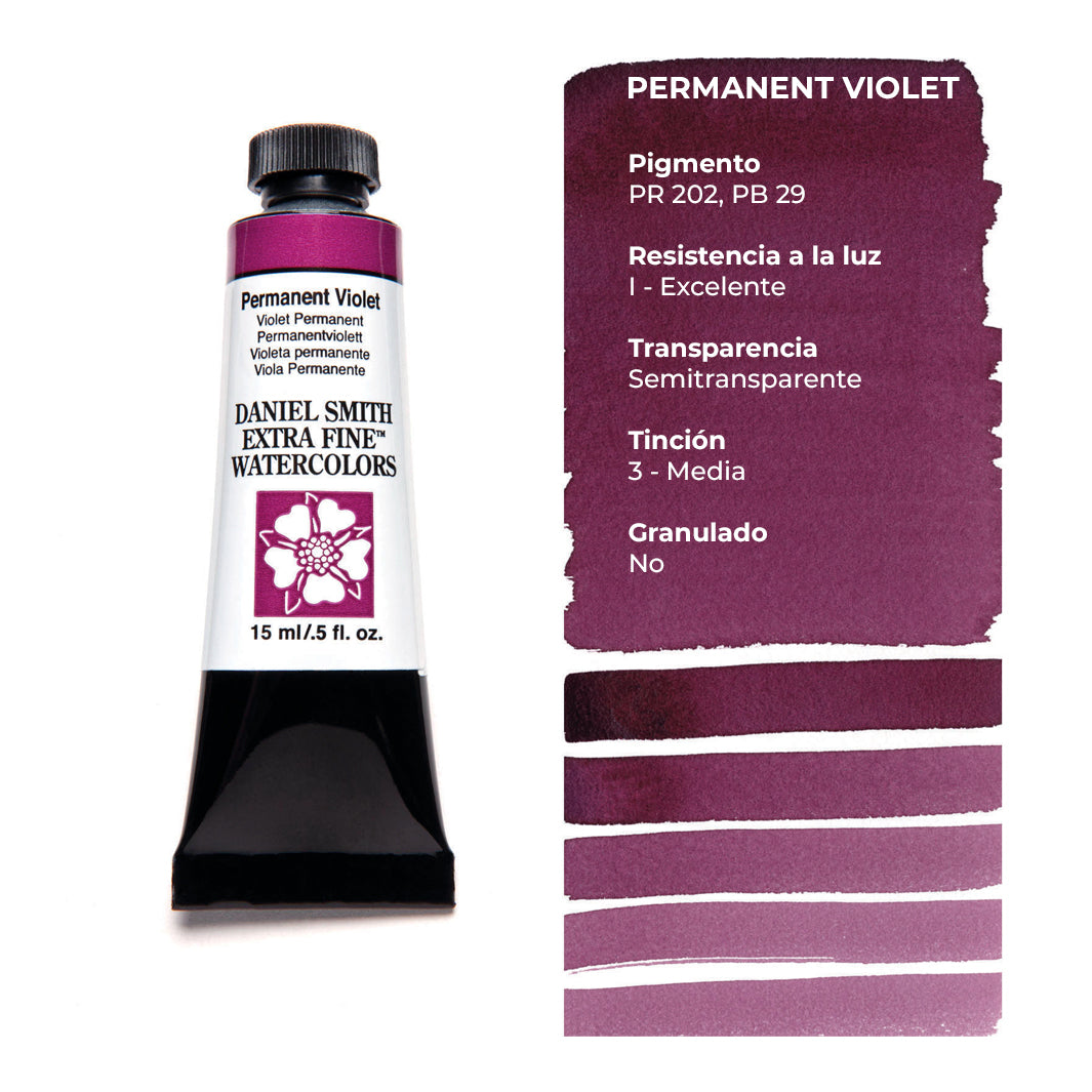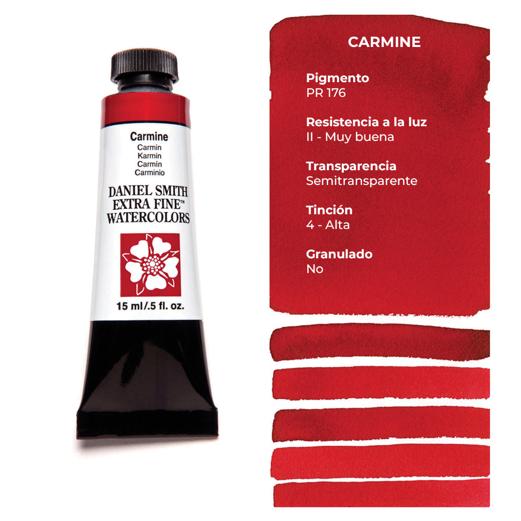 Cada tubo individual de acuarela Daniel Smith trae 15 ml de pintura; las tenemos disponibles en 100 colores, incluyendo los magníficos quinacridonas que solo Daniel Smith ofrece.