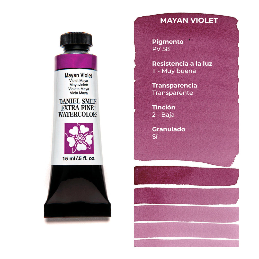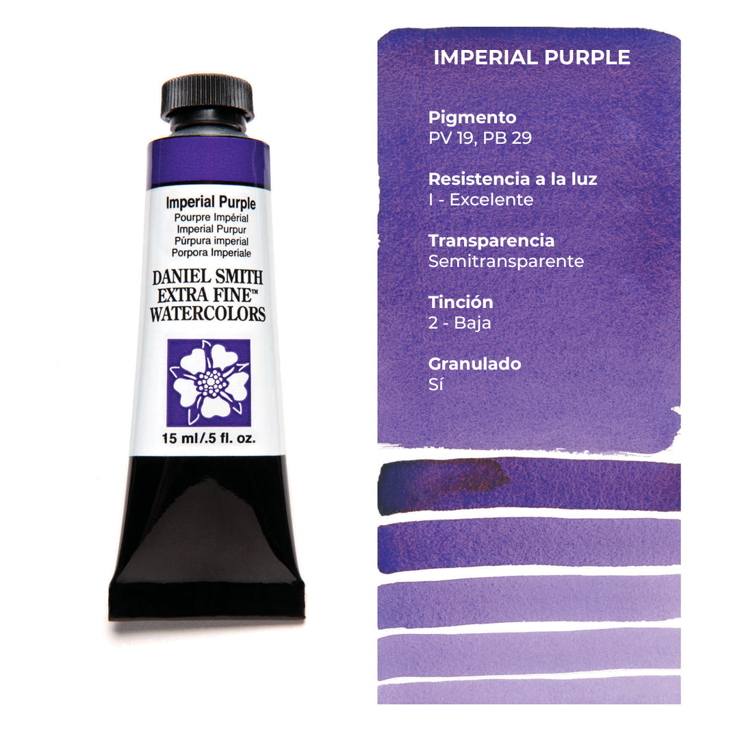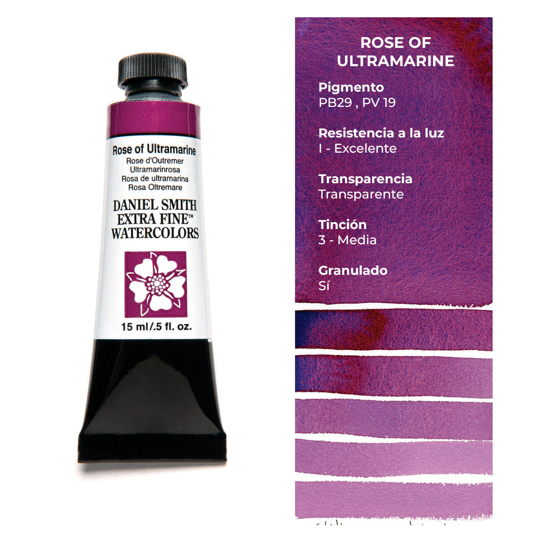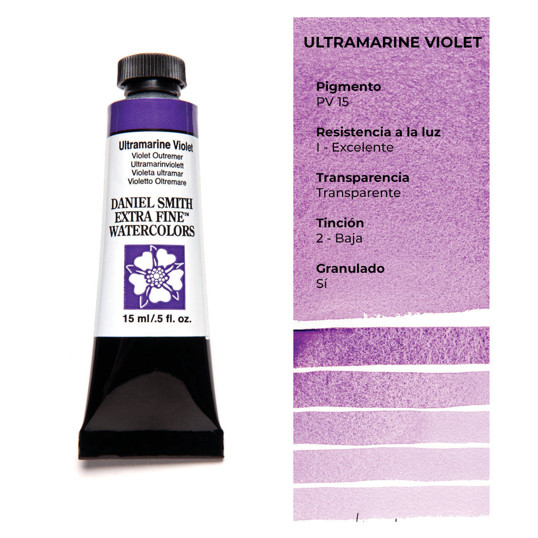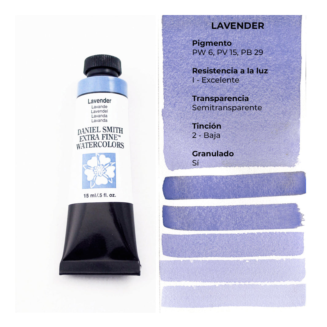 Aquí encontrarás los tonos amarillos, naranjas, rojos, rosados, morados y azules de las acuarelas Daniel Smith. ¿Buscas los demás colores? Encuéntralos aquí.