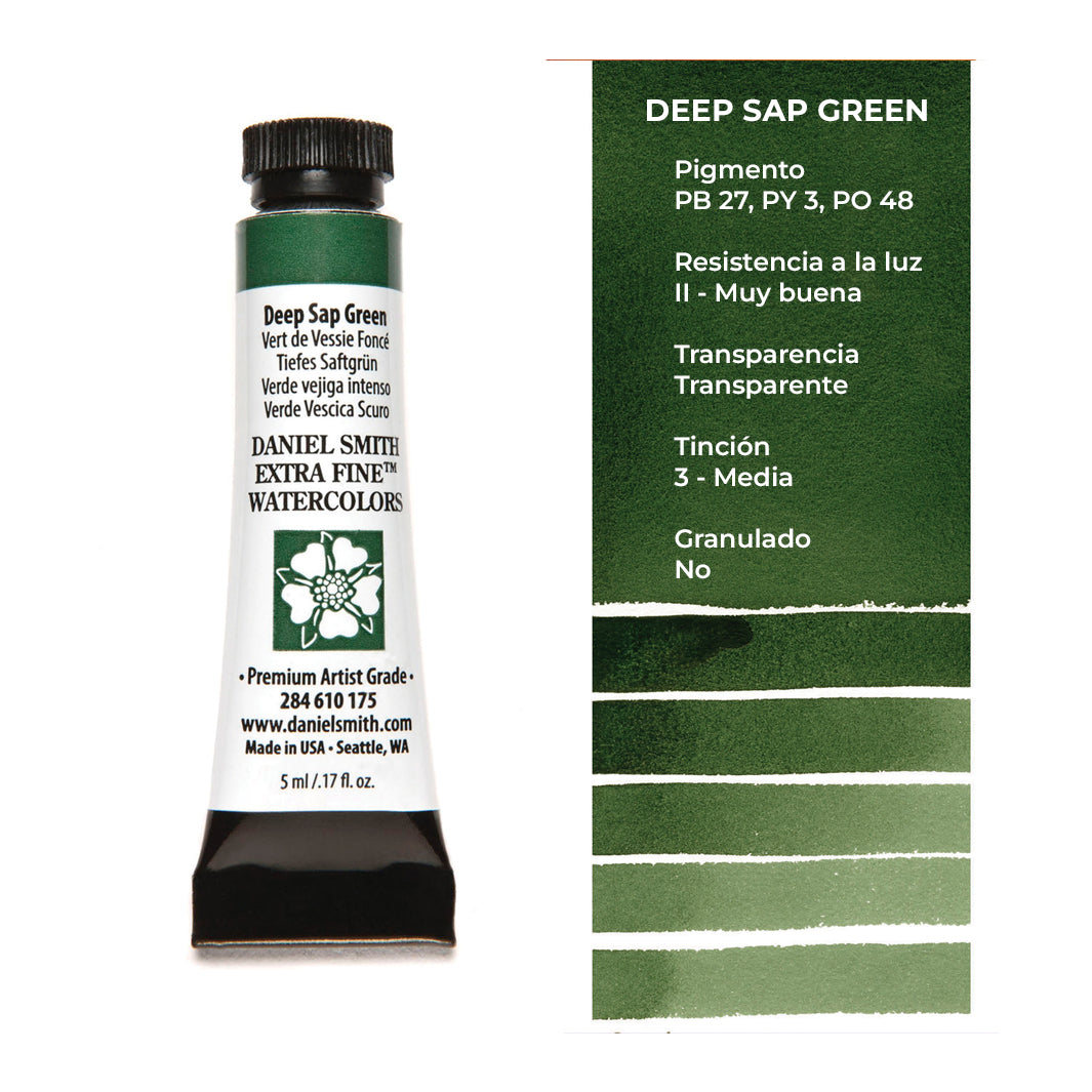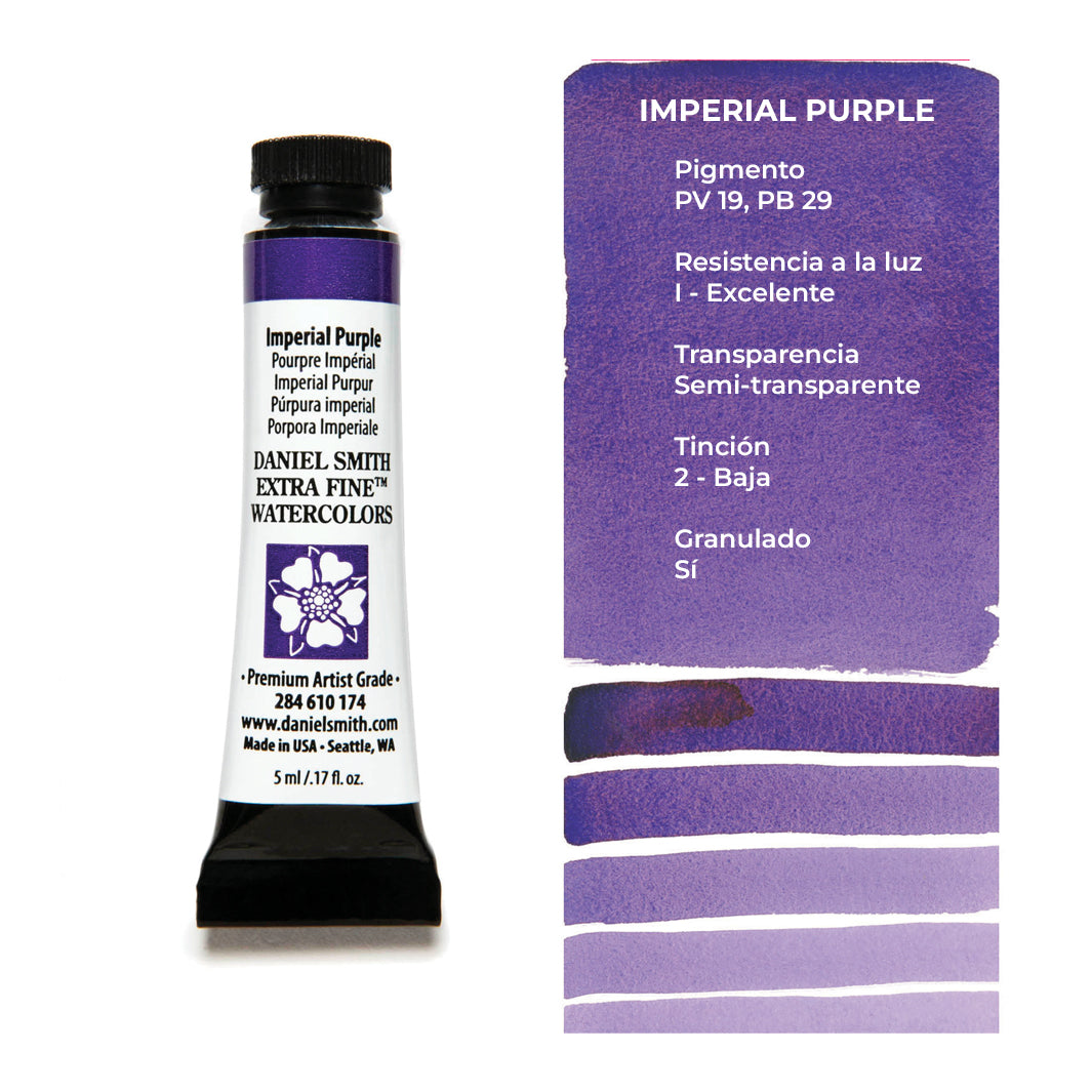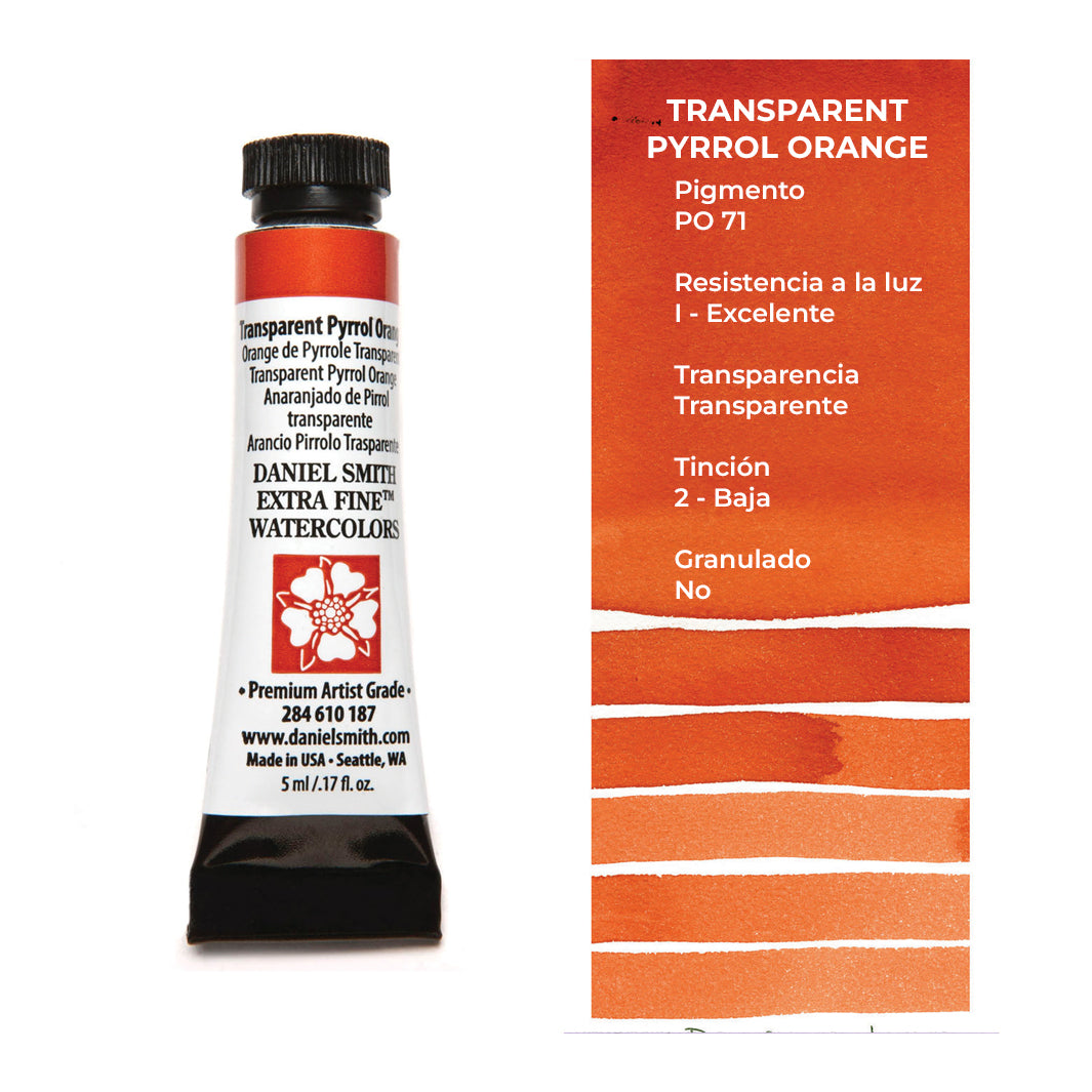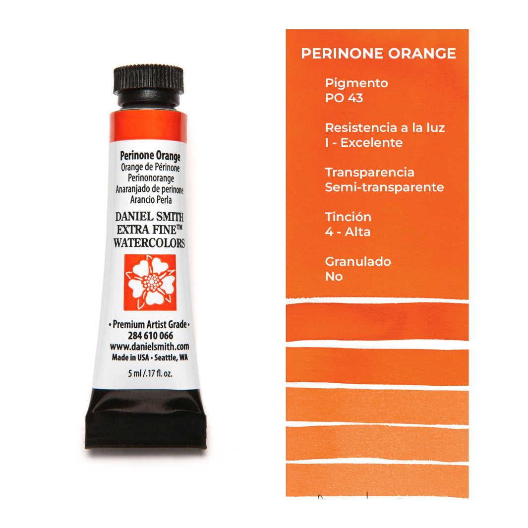Cada tubo individual de acuarela Daniel Smith trae 5 ml de pintura; las tenemos disponibles en 100 colores, incluyendo una selección de cadmios y cobaltos verdaderos, los populares Opera Pink y Neutral Tint, y los magníficos quinacridonas que solo Daniel Smith ofrece.