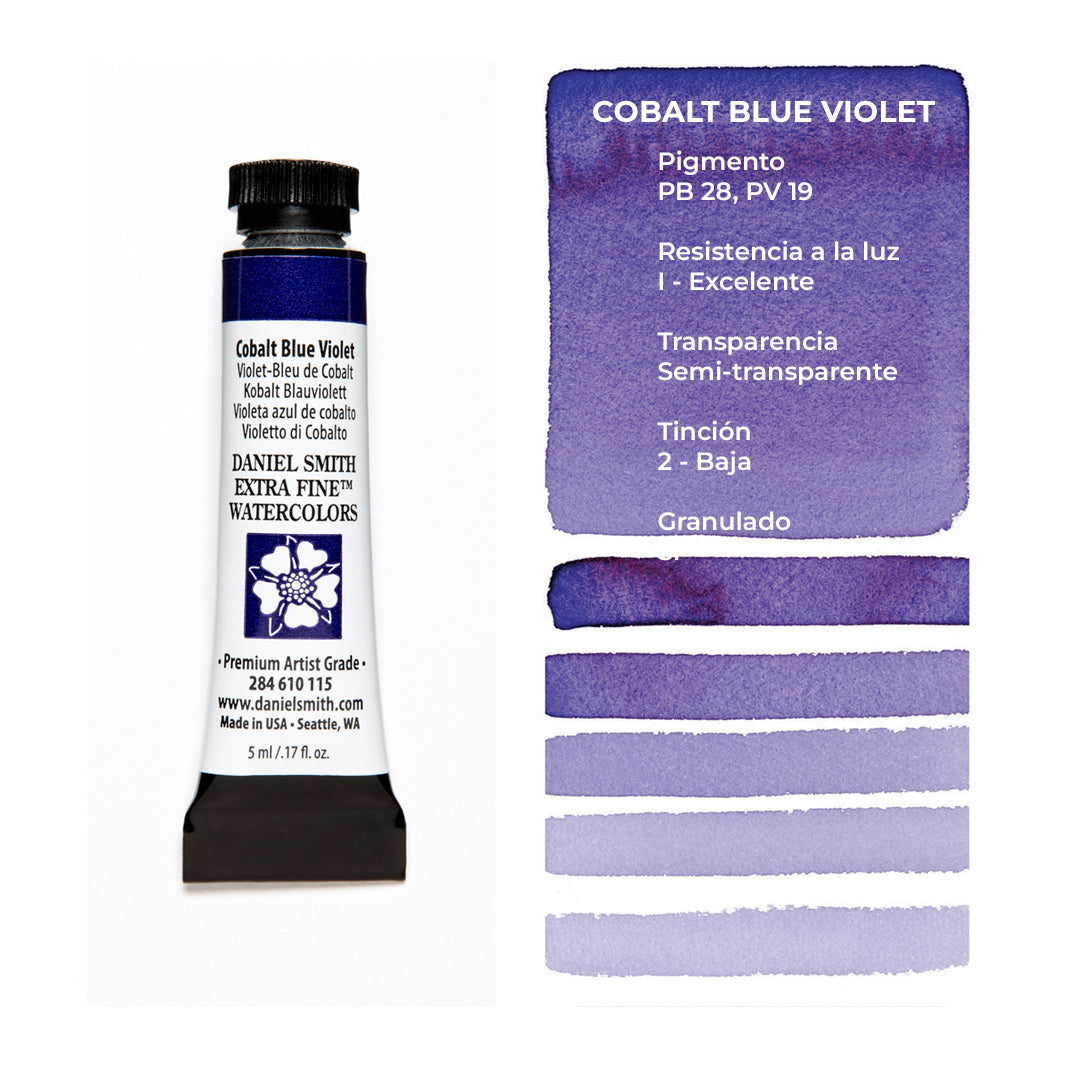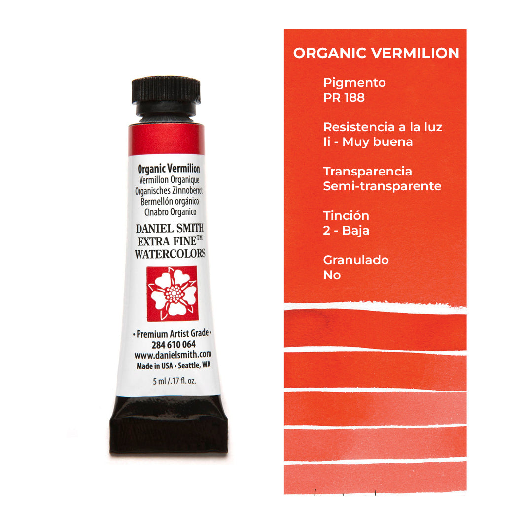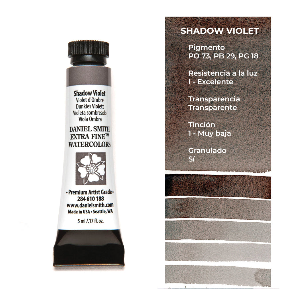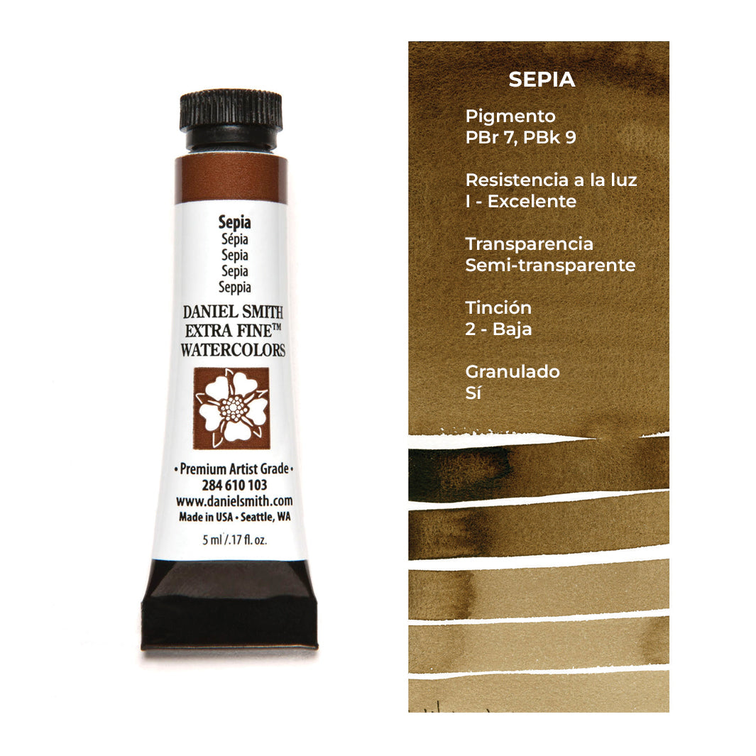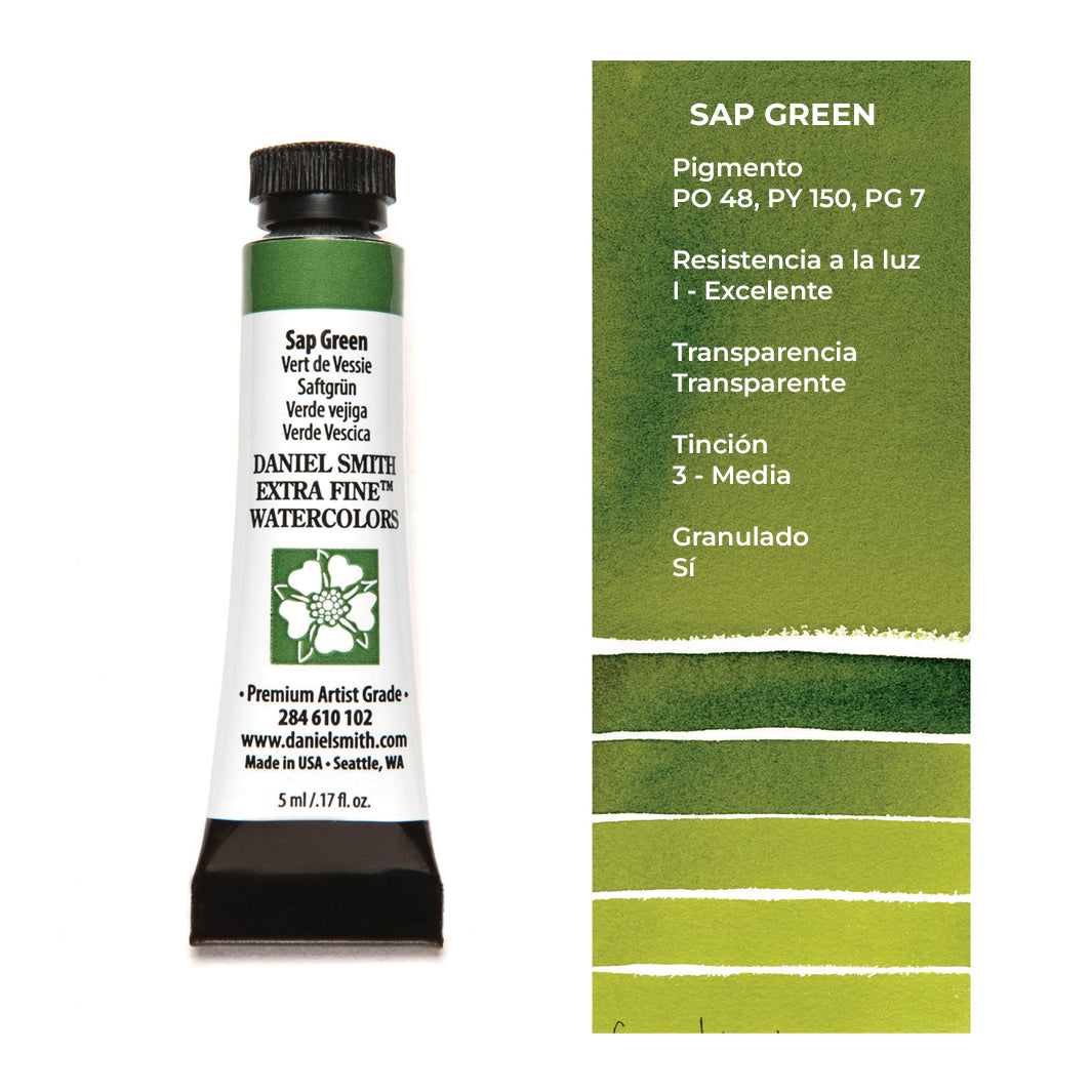 Cada tubo individual de acuarela Daniel Smith trae 5 ml de pintura; las tenemos disponibles en 100 colores, incluyendo una selección de cadmios y cobaltos verdaderos, los populares Opera Pink y Neutral Tint, y los magníficos quinacridonas que solo Daniel Smith ofrece.