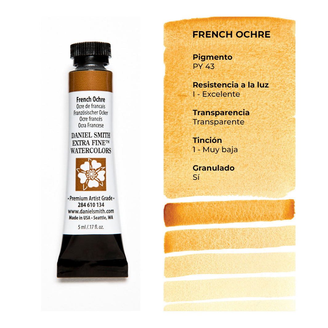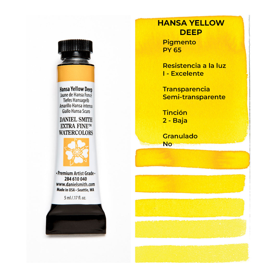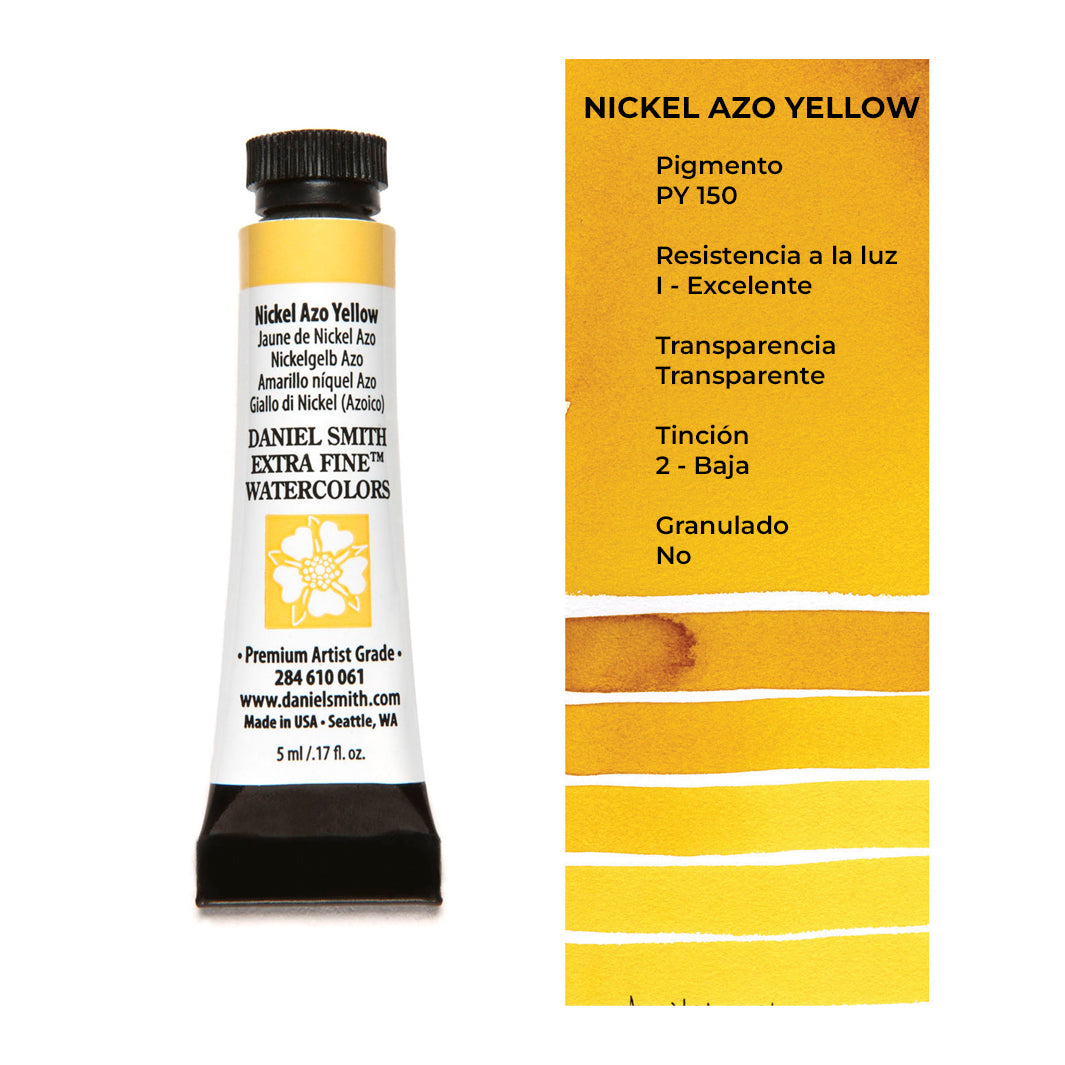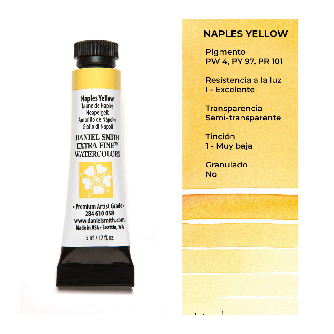 Cada tubo individual de acuarela Daniel Smith trae 5 ml de pintura; las tenemos disponibles en 100 colores, incluyendo una selección de cadmios y cobaltos verdaderos, los populares Opera Pink y Neutral Tint, y los magníficos quinacridonas que solo Daniel Smith ofrece.
