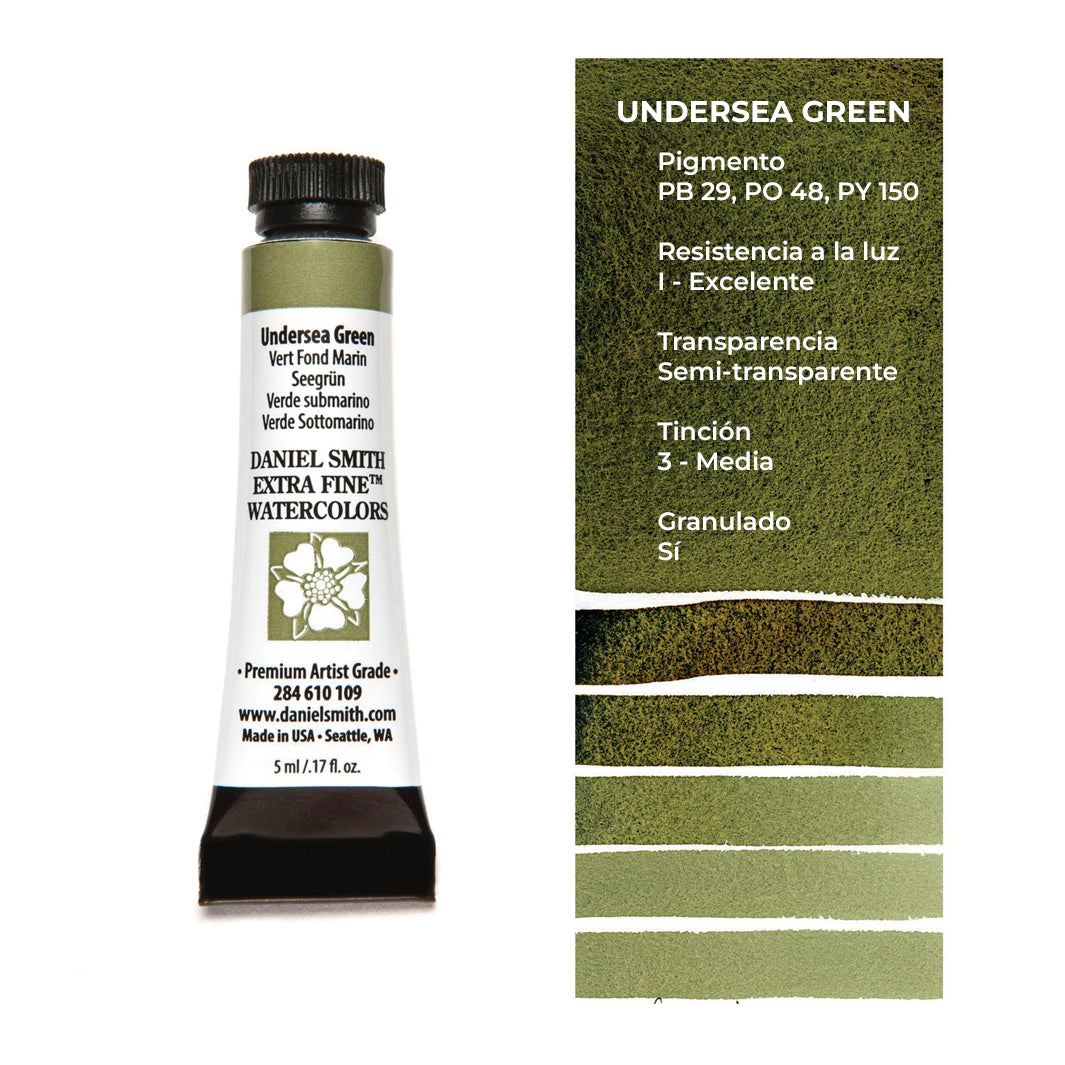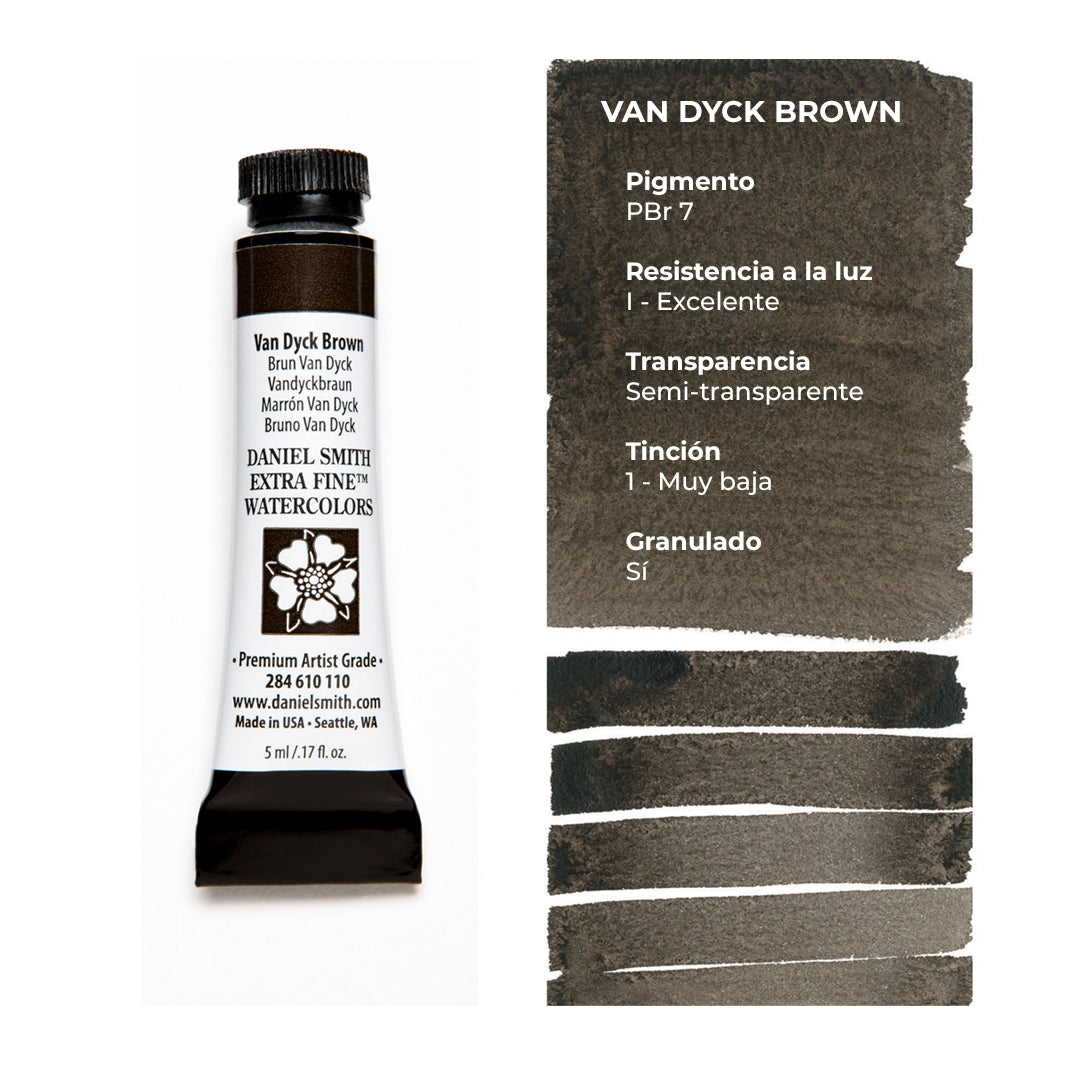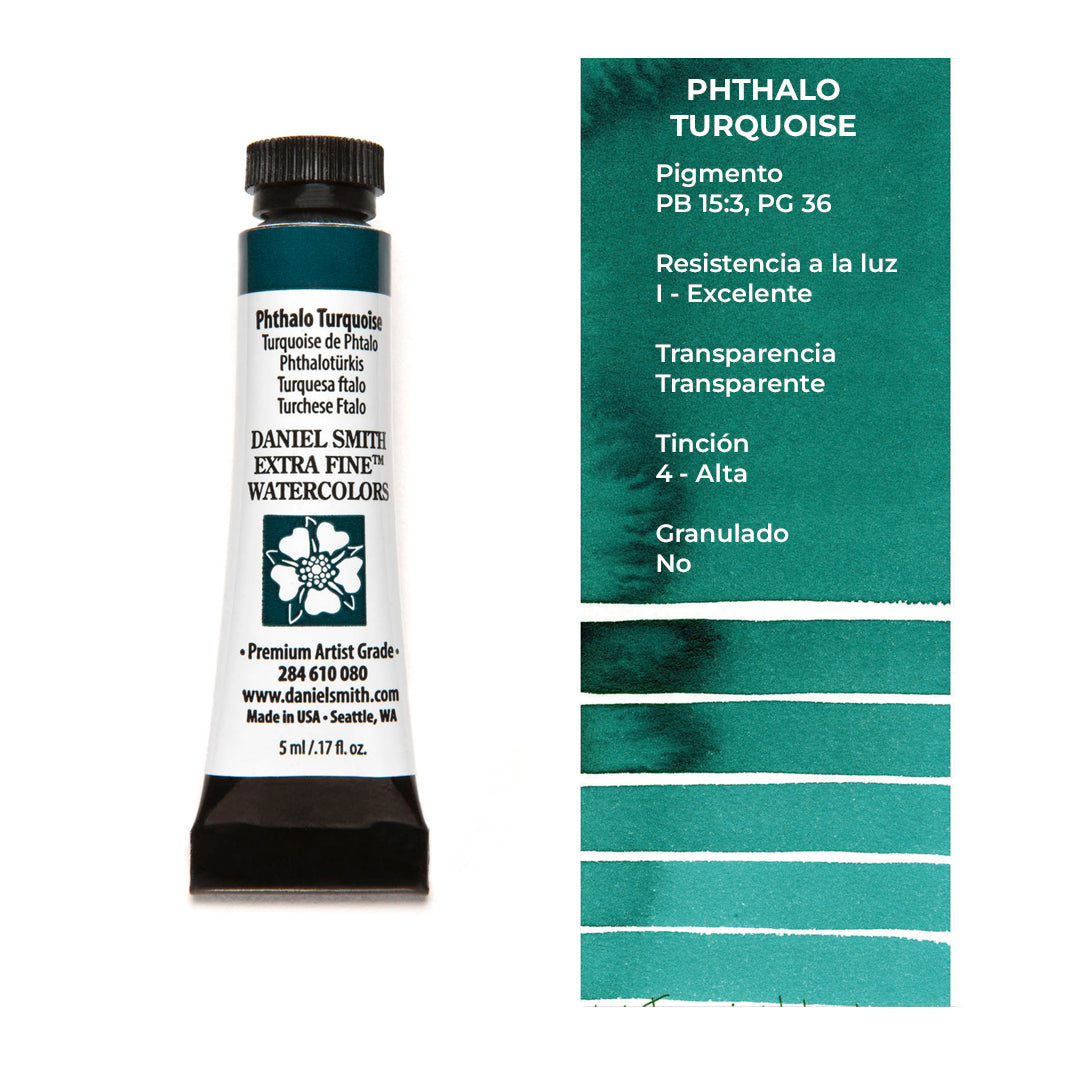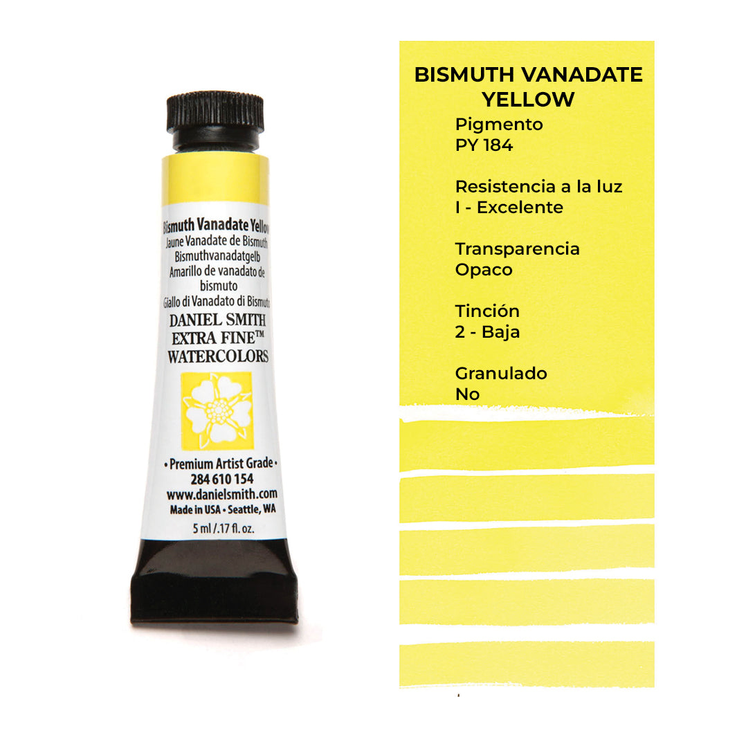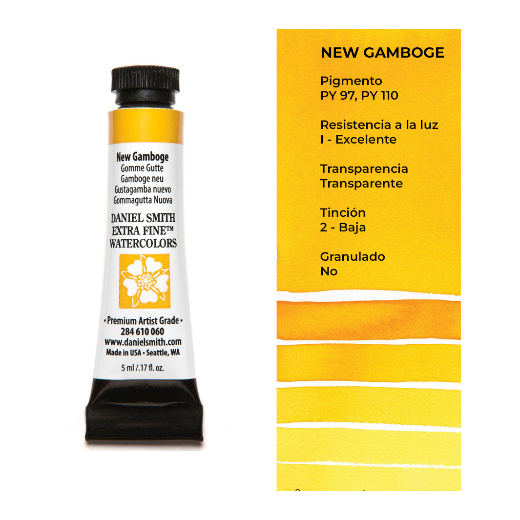 Cada tubo individual de acuarela Daniel Smith trae 5 ml de pintura; las tenemos disponibles en 100 colores, incluyendo una selección de cadmios y cobaltos verdaderos, los populares Opera Pink y Neutral Tint, y los magníficos quinacridonas que solo Daniel Smith ofrece.