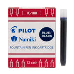 Cada cajita incluye 12 cartuchos de tinta para pluma fuente Pilot Namiki, todos del mismo color. Estos cartuchos están disponibles en 3 colores diferentes: negro, negro azulado y azul.