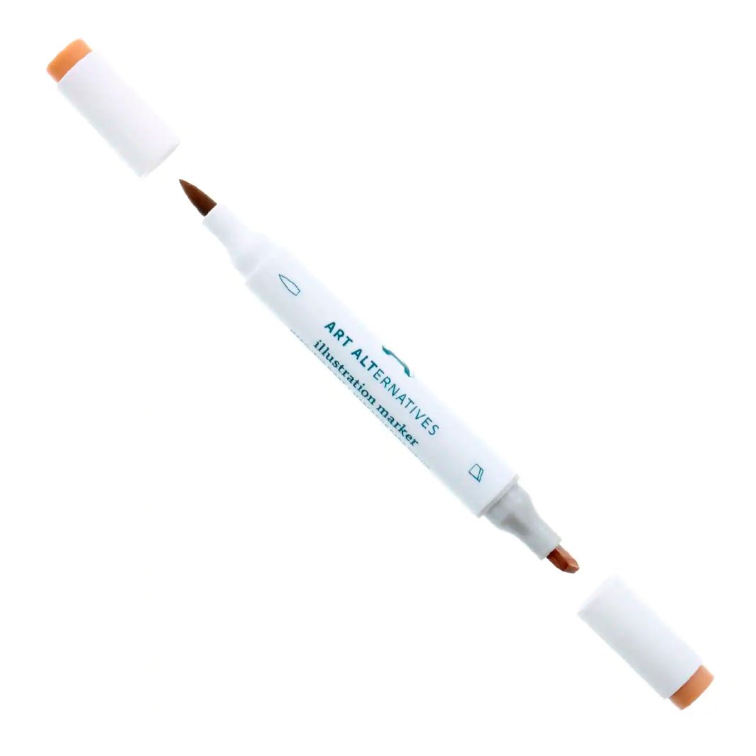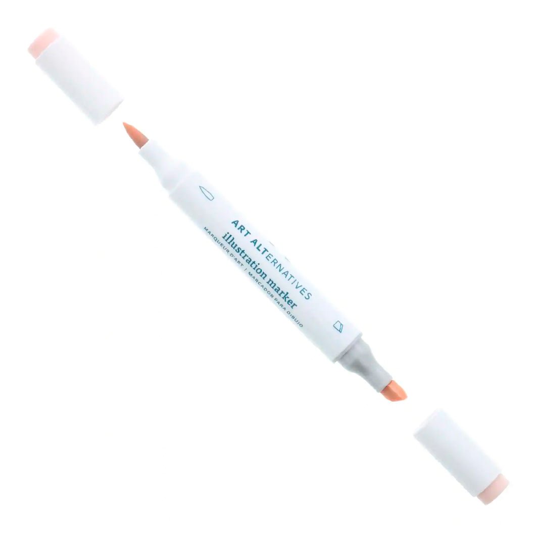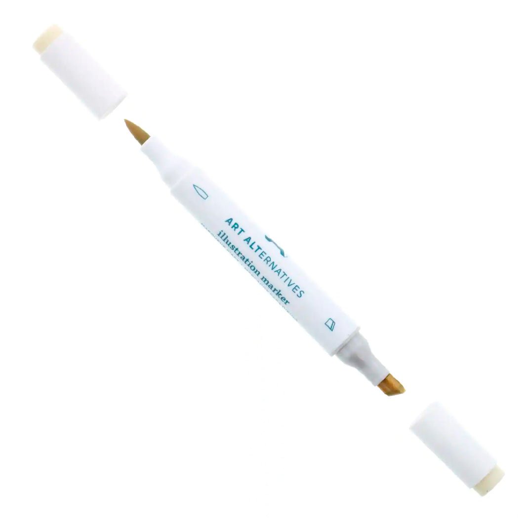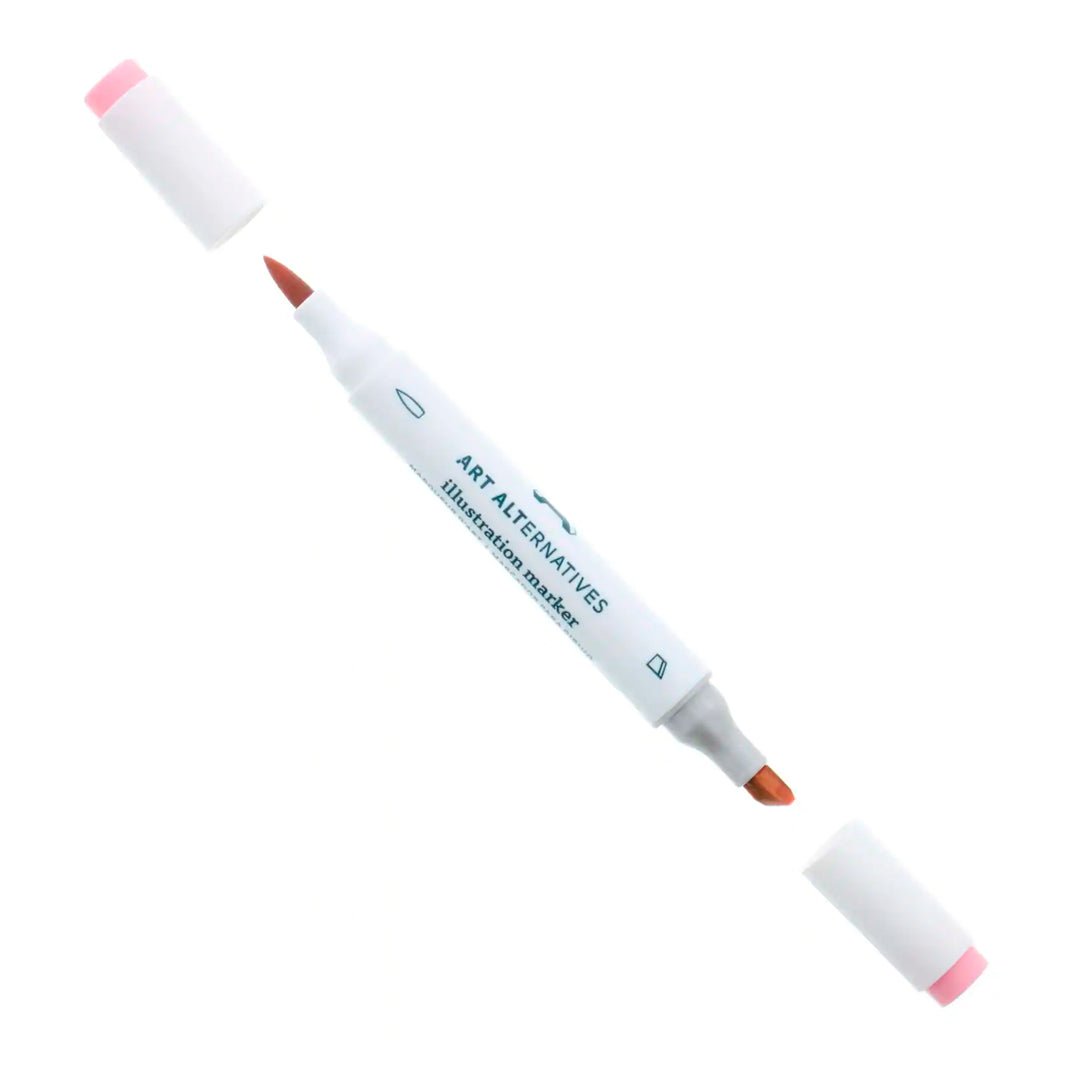 Los Art Alternatives tienen dos puntas: una de pincel semi-flexible y otra de cincel, rígida. Lo mejor es su tinta: te dará un acabado parejito, se comporta muy bien al aplicar varias capas y es fácil de mezclar. ¡Es compatible con marcadores de alcohol de otras marcas!
