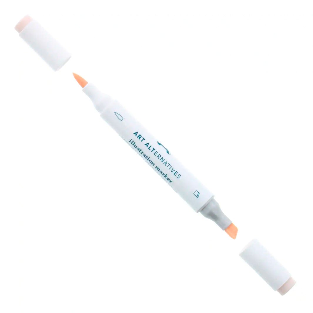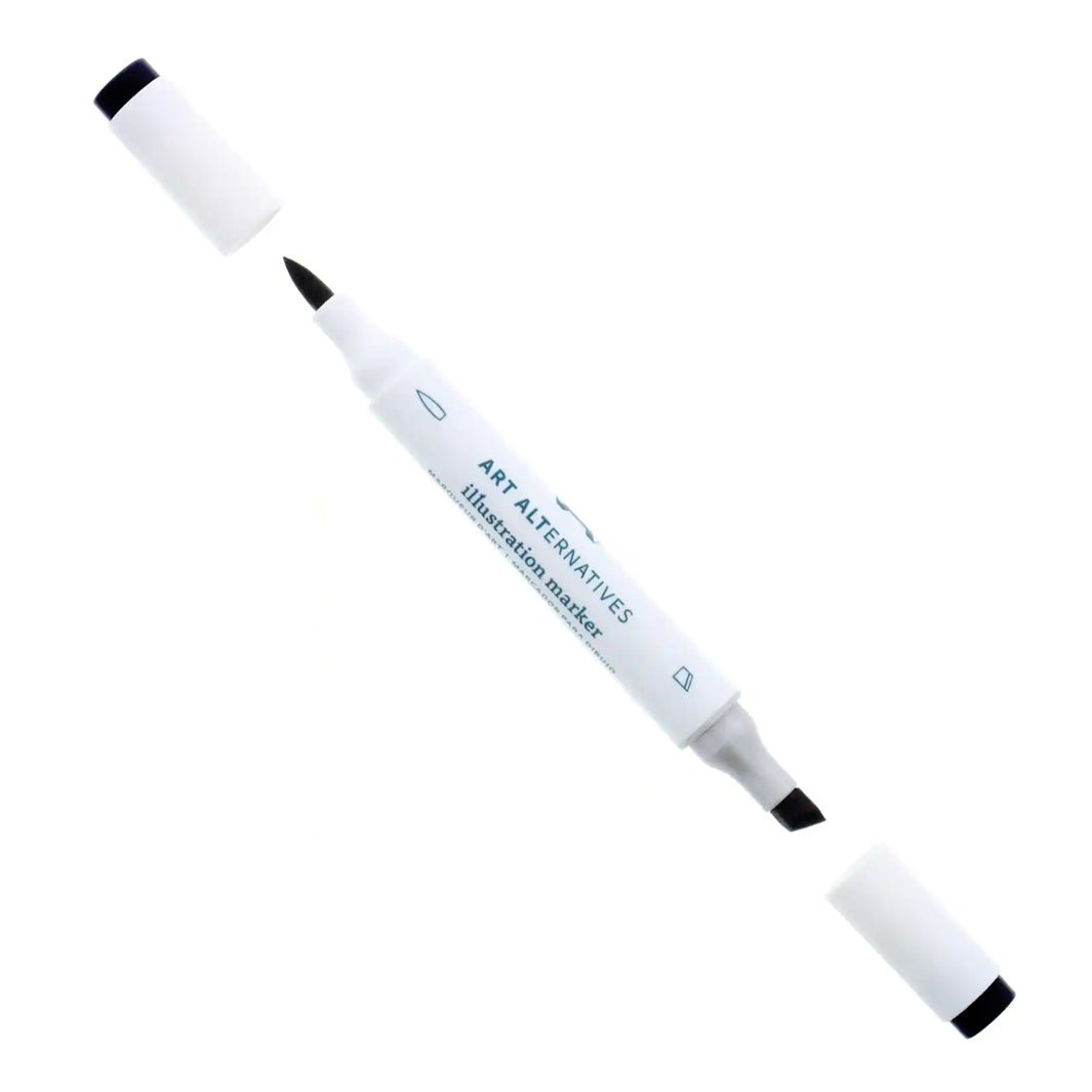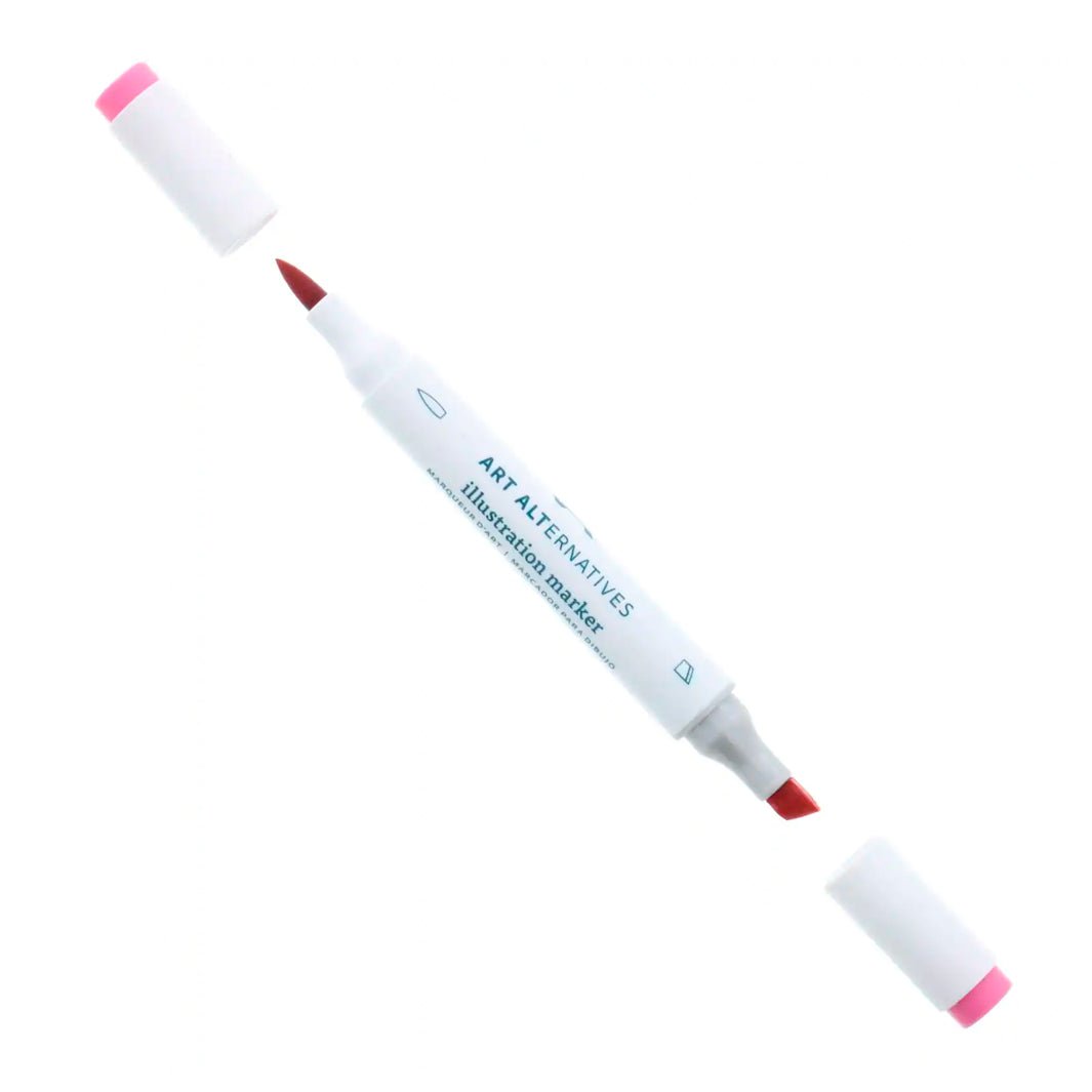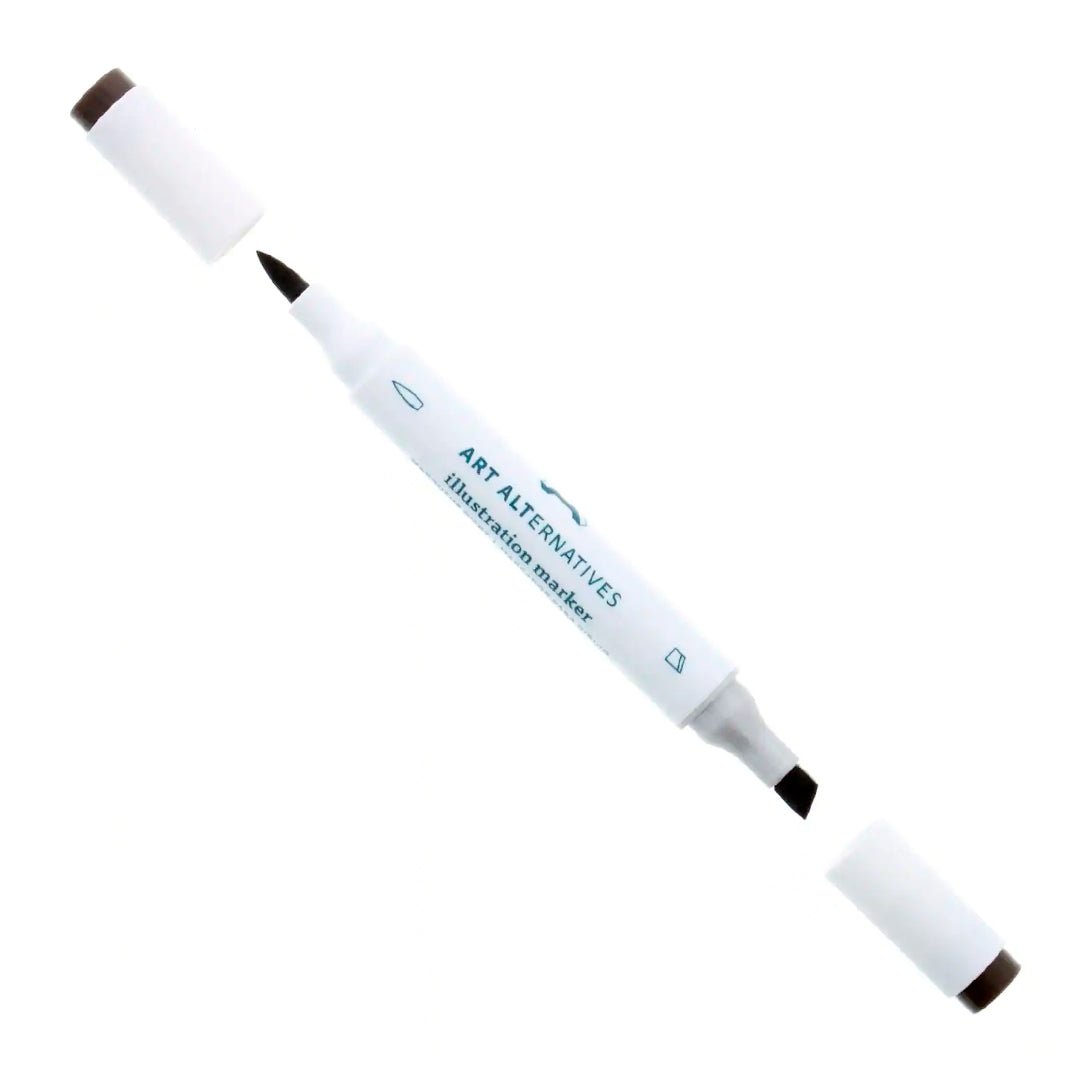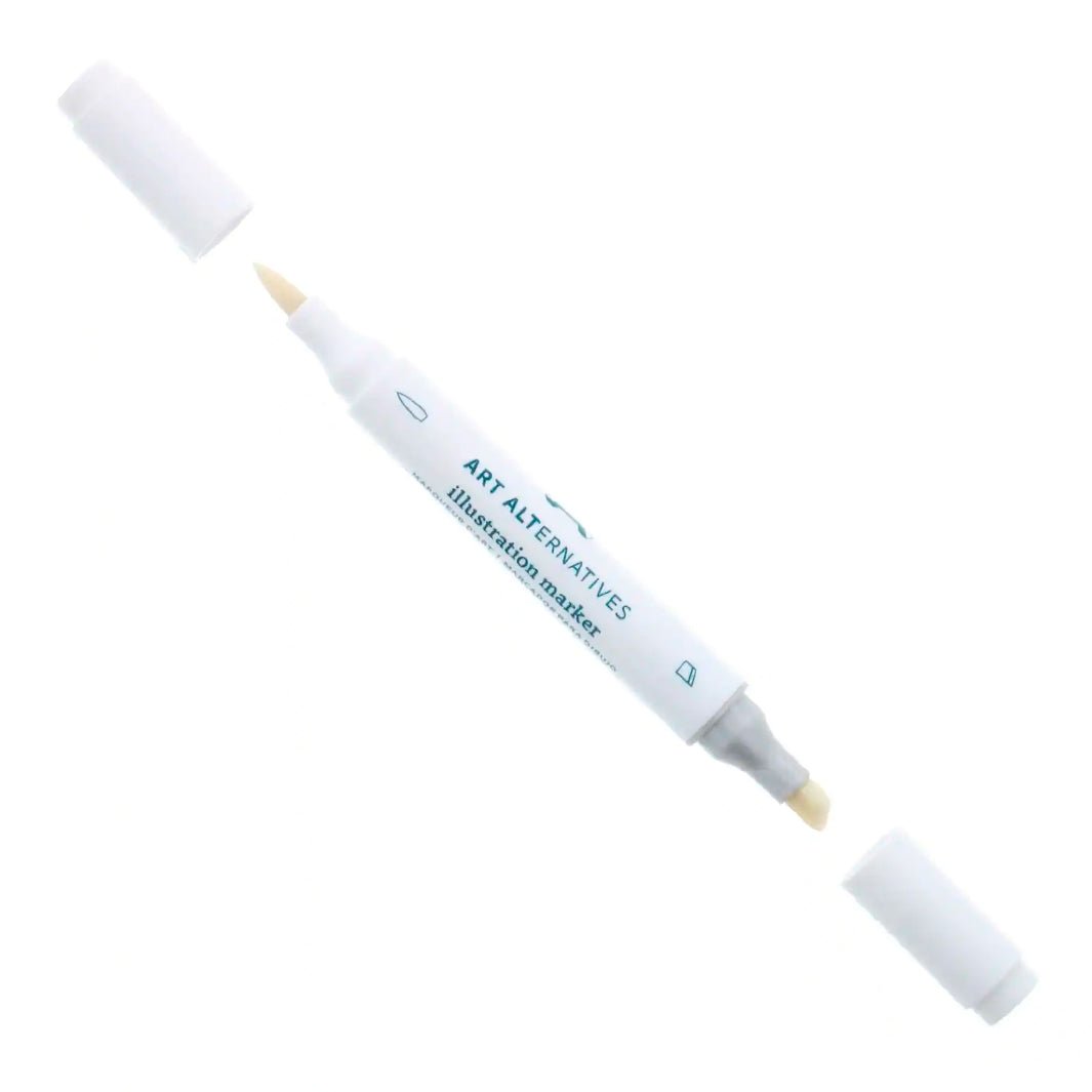 Los Art Alternatives tienen dos puntas: una de pincel semi-flexible y otra de cincel, rígida. Lo mejor es su tinta: te dará un acabado parejito, se comporta muy bien al aplicar varias capas y es fácil de mezclar. ¡Es compatible con marcadores de alcohol de otras marcas!