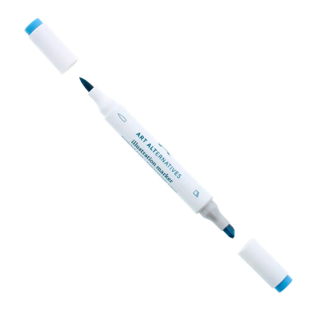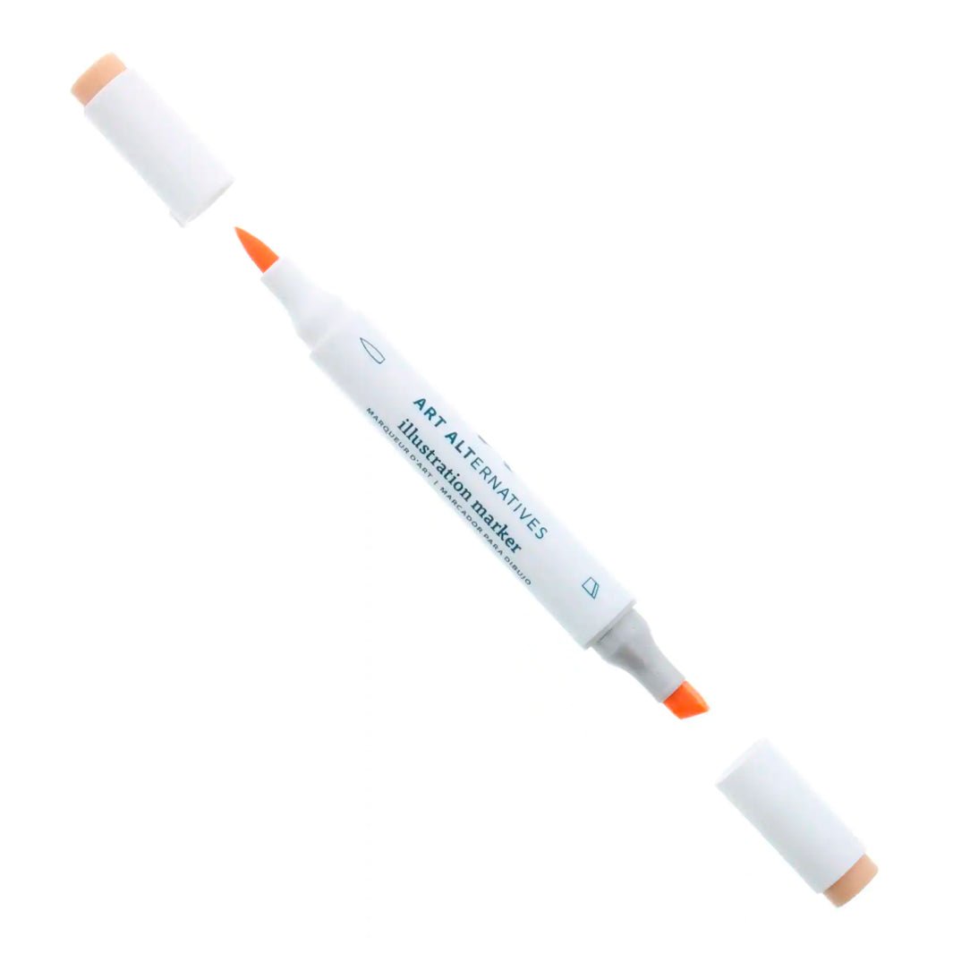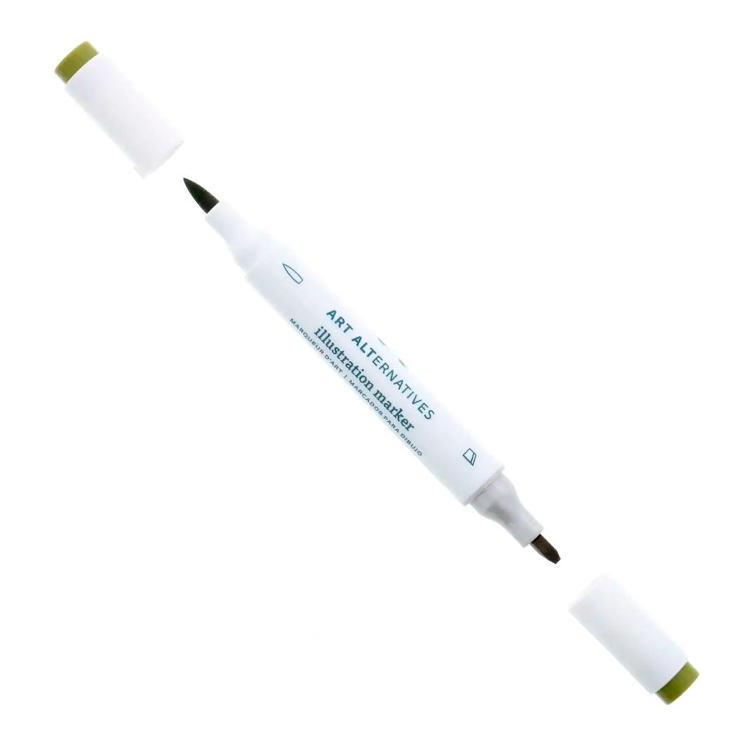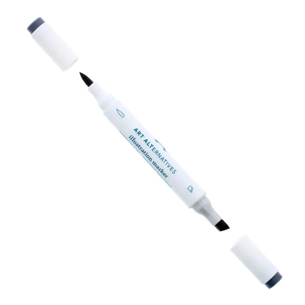 Los Art Alternatives tienen dos puntas: una de pincel semi-flexible y otra de cincel, rígida. Lo mejor es su tinta: te dará un acabado parejito, se comporta muy bien al aplicar varias capas y es fácil de mezclar. ¡Es compatible con marcadores de alcohol de otras marcas!