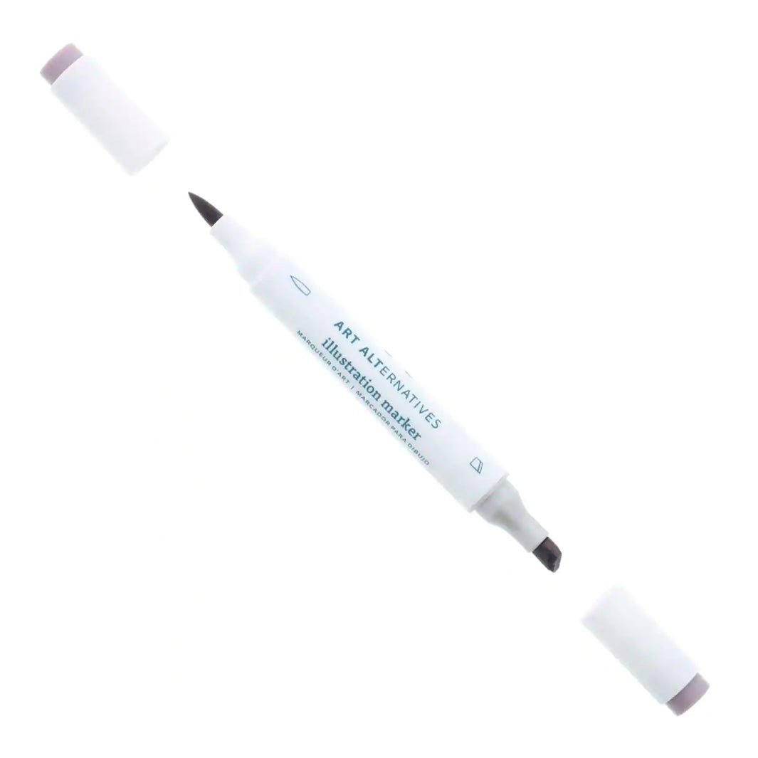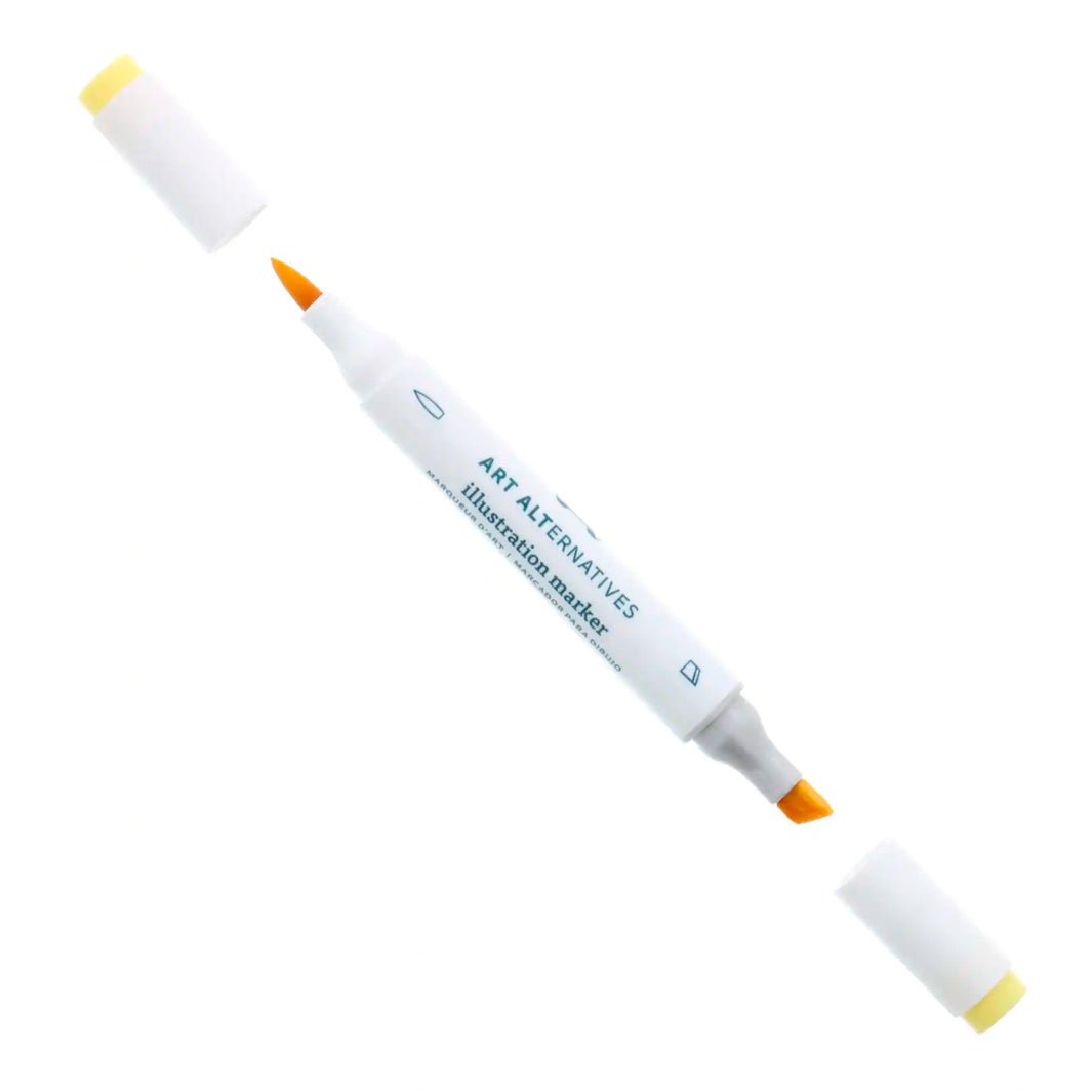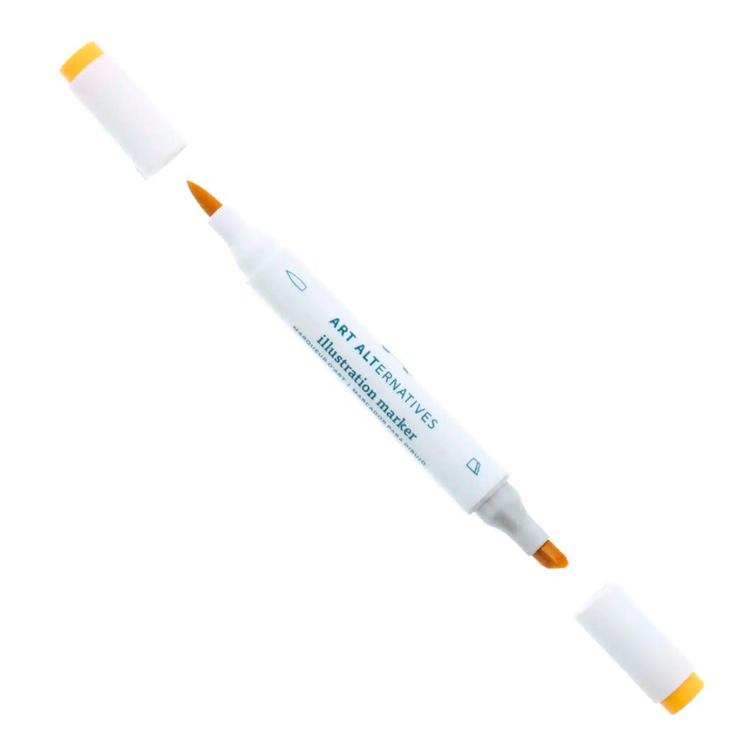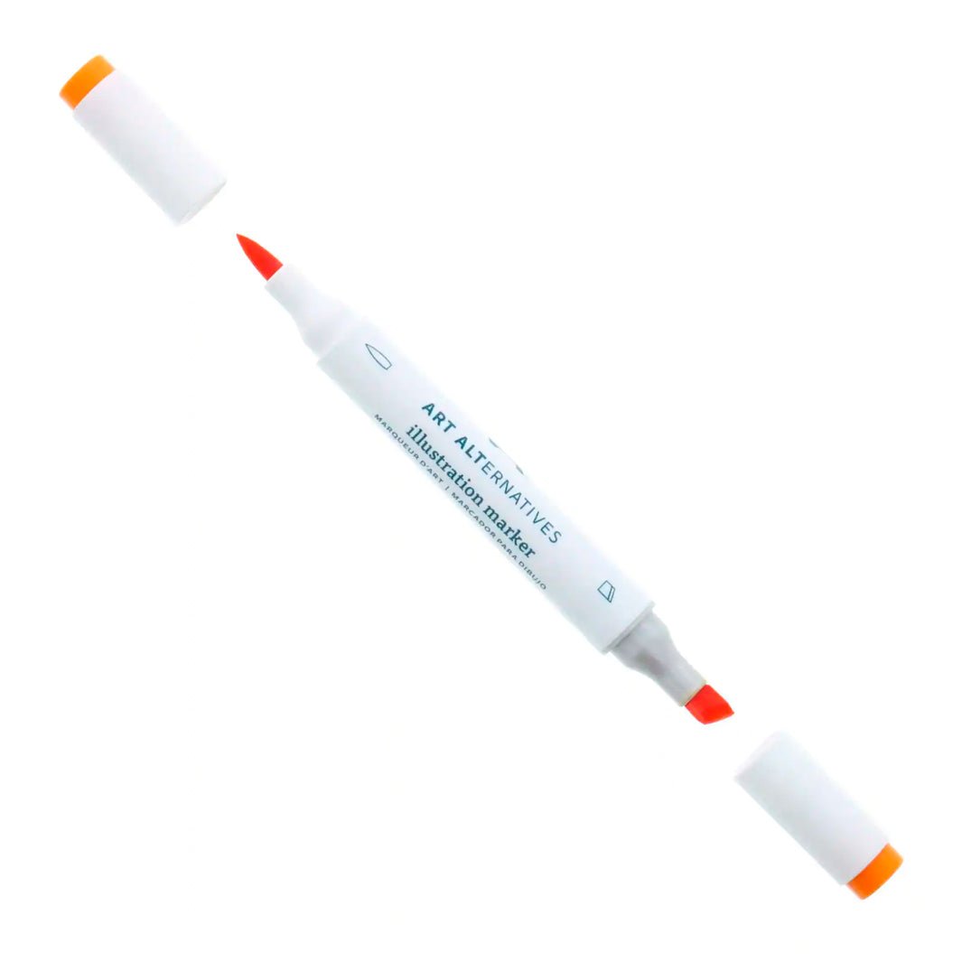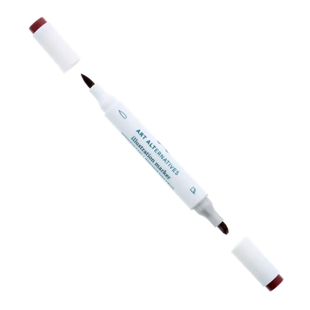 Los Art Alternatives tienen dos puntas: una de pincel semi-flexible y otra de cincel, rígida. Lo mejor es su tinta: te dará un acabado parejito, se comporta muy bien al aplicar varias capas y es fácil de mezclar. ¡Es compatible con marcadores de alcohol de otras marcas!