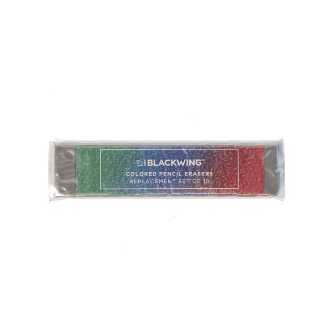 Estos paquetitos incluyen 10 gomas de repuesto para tus lápices Blackwing. Están disponibles en dos tipos: goma tradicional para grafito (en varios colores) y goma Sand de sílice (gris), especial para borrar lápices de colores como los Blackwing Colors, el Blackwing Blue y el Blackwing Red.