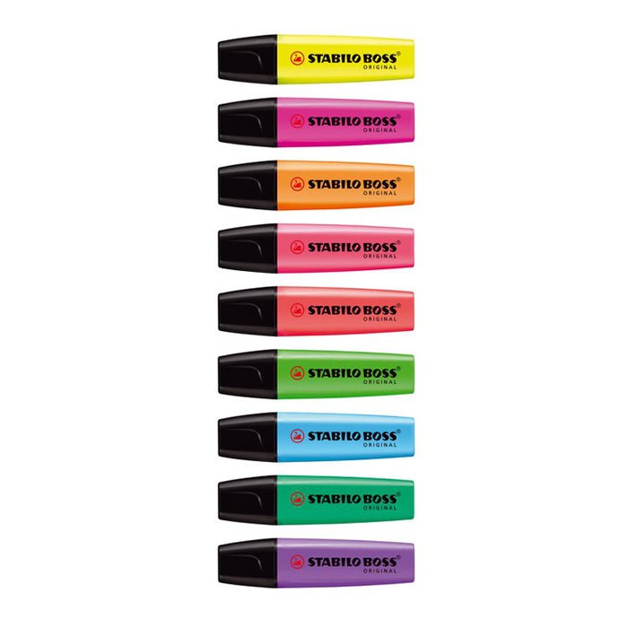 Este set trae toda la gama de Stabilo Boss Neón; vienen sueltos, sin estuche. Los Stabilo Boss Pastel Original son marcatextos en colores vivos e intensos, perfectos para resaltar sin lastimarte la vista. Su punta de cincel te permite conseguir dos anchos de trazo: 2mm y 5mm. Además, puedes mantenerlos destapados hasta 4 horas sin que se sequen.