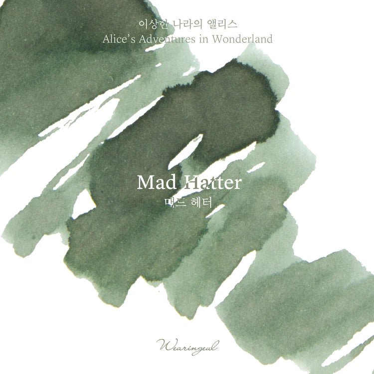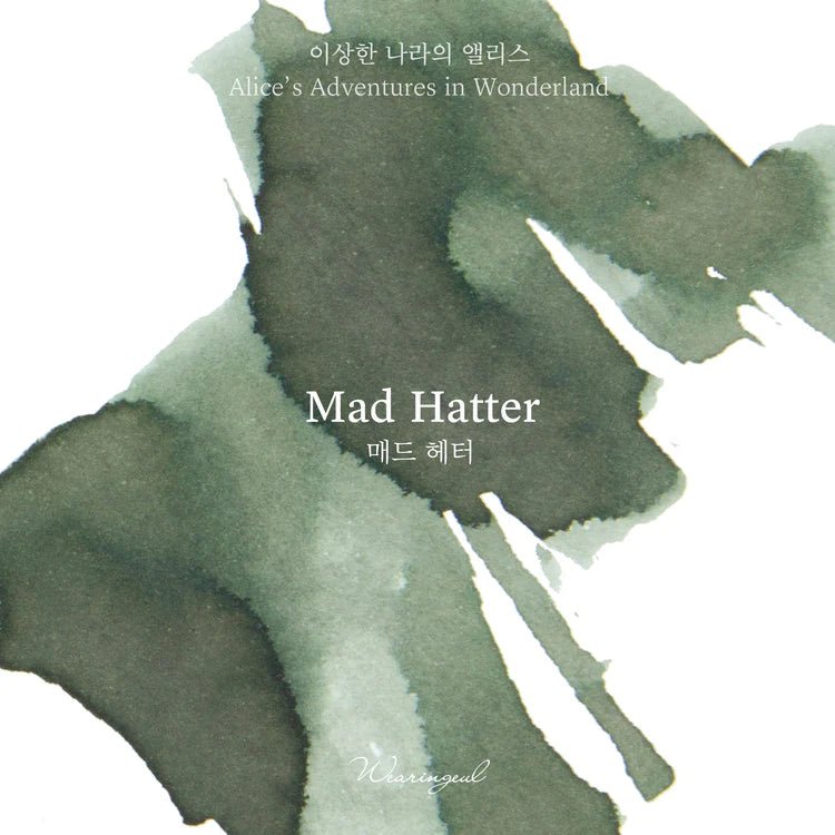 Cada gota de tinta Wearingeul es un viaje mágico inspirado en libros y poemas clásicos: esta tinta, Mad Hatter, es parte de la colección "Las Aventuras de Alicia en el País de las Maravillas" y es un homeje al querido Sombrerero Loco.