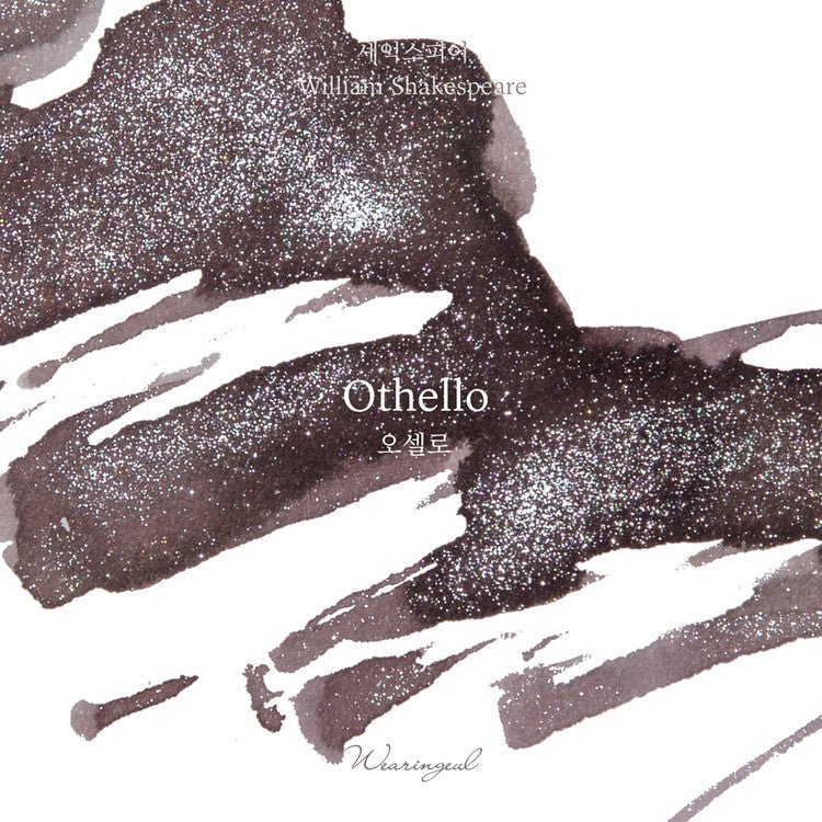 Cada gota de tinta Wearingeul es un viaje mágico inspirado en libros y poemas clásicos: esta tinta, Othello, es parte de la colección "El Color de la Literatura" y es un homeje a la trágica obra Otelo de William Shakespeare.